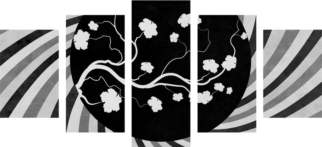5 részes kép ázsiai modern művészet fekete-fehér kivitelben