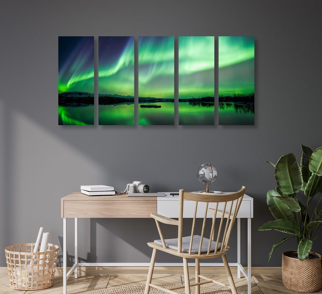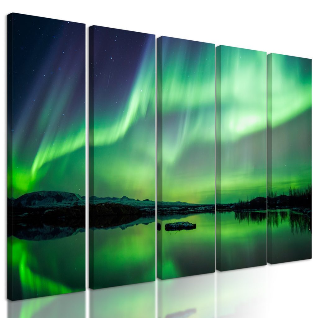 5 részes kép csodálatos zöld sarki fény