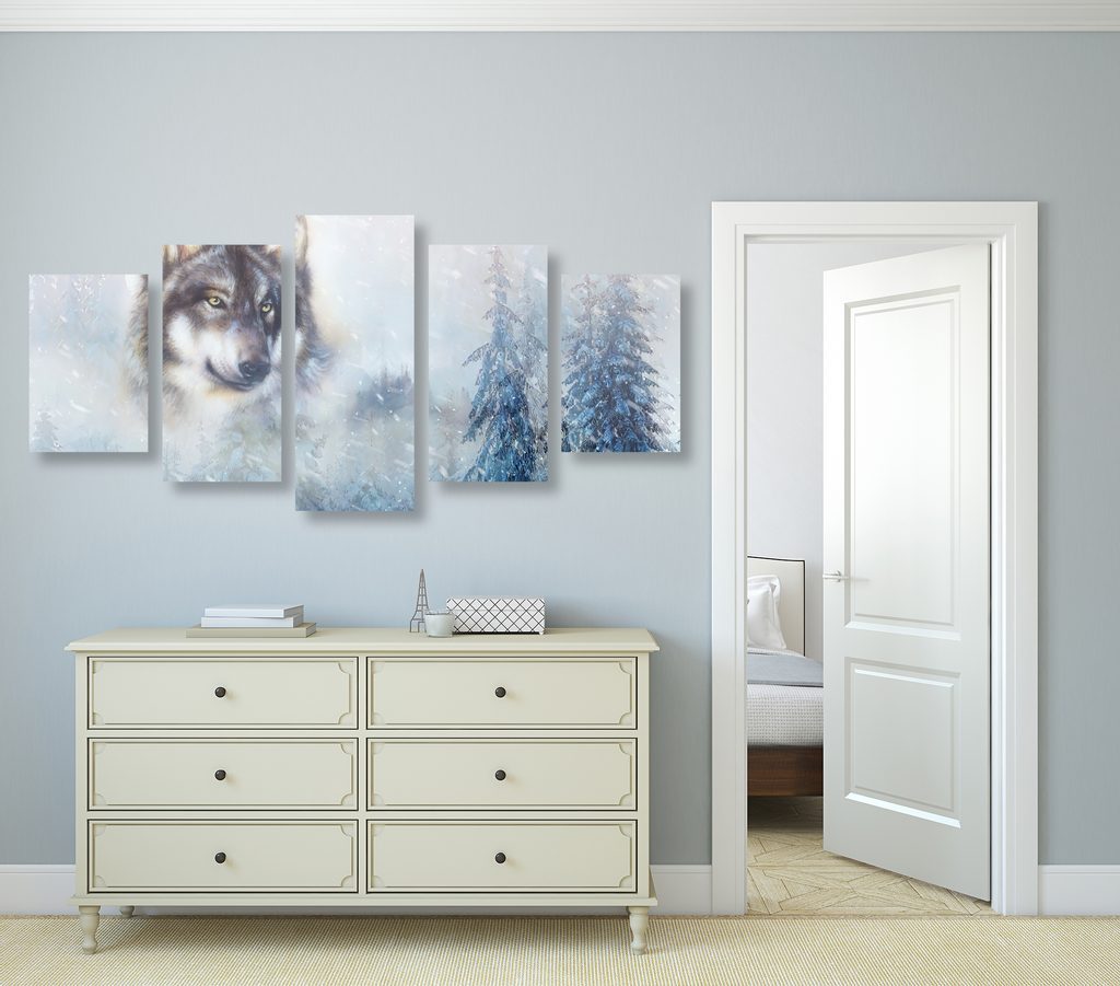 5 részes kép farkas portréja művészi kivitelben
