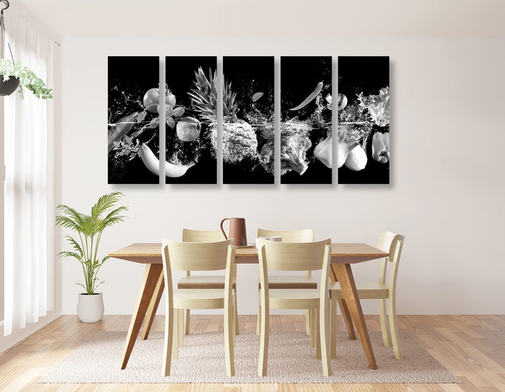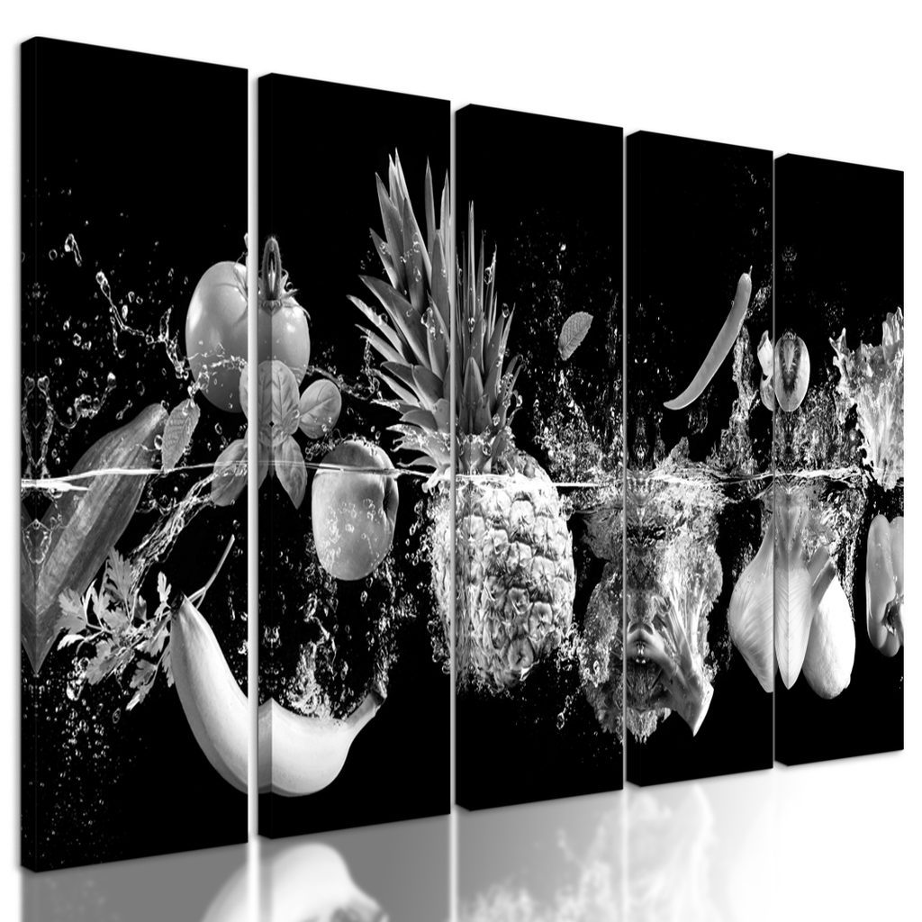 5 részes kép fekete-fehér gyümölcsök a vízben
