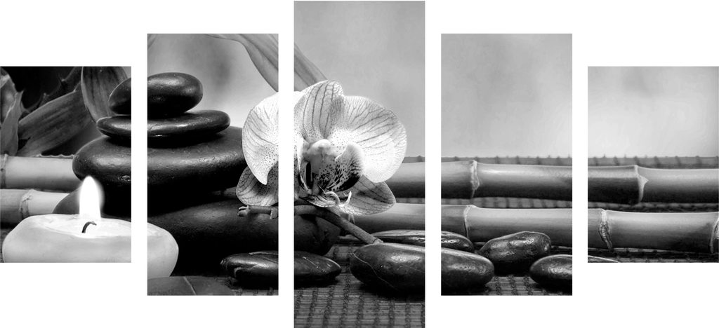 5 részes kép Feng Shui kert fekete-fehér kivitelben