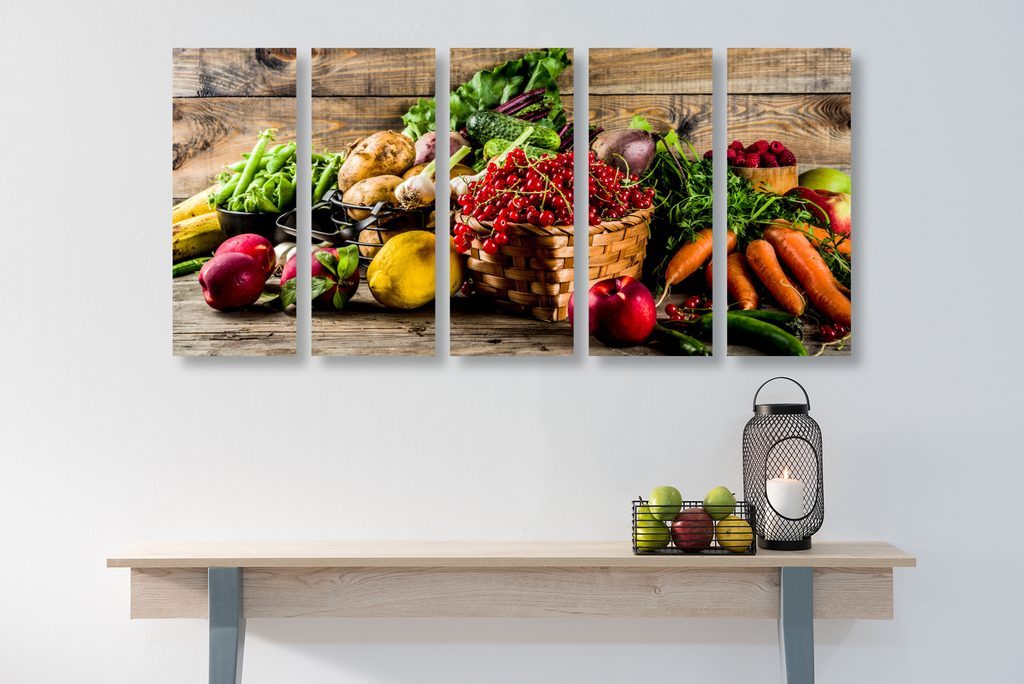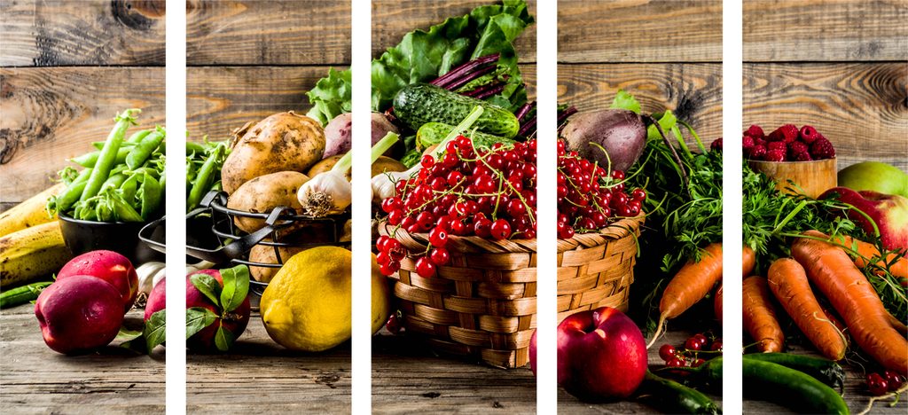5 részes kép friss zöldség és gyümölcs keveréke
