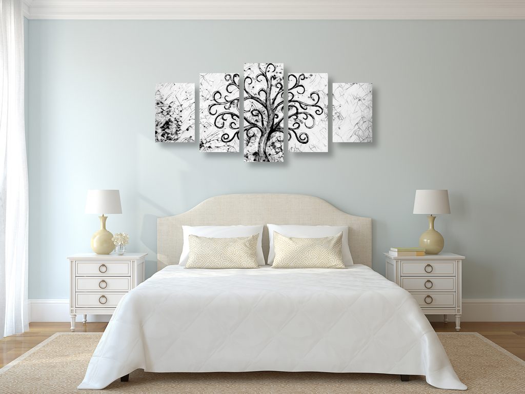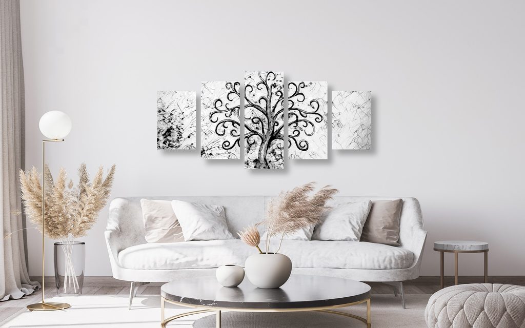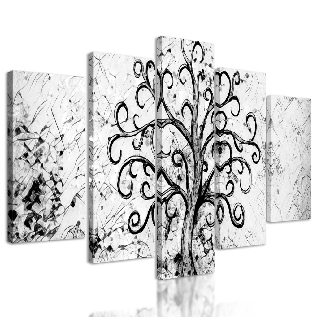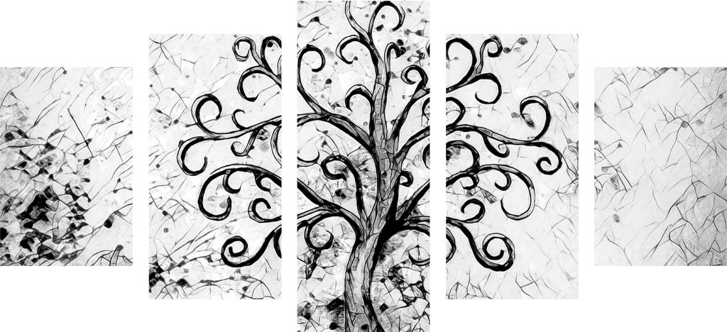 5 részes kép halhatatlan életfa fekete-fehér kivitelben