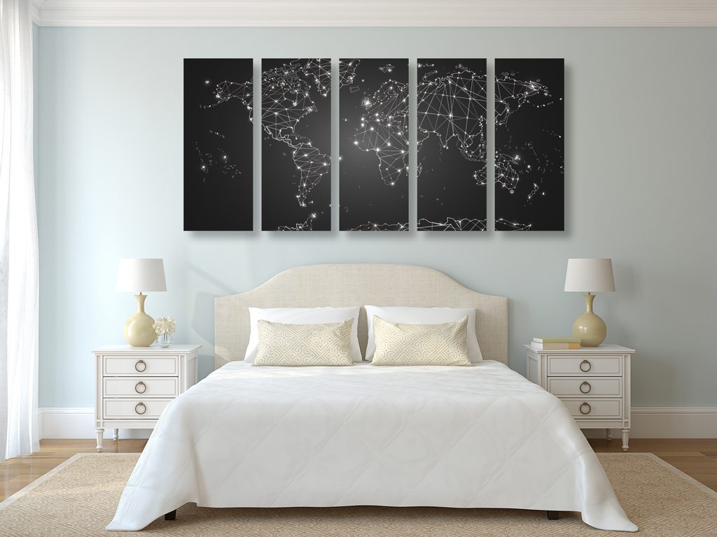 5 részes kép földrajzi világtérkép fekete-fehér kivitelben
