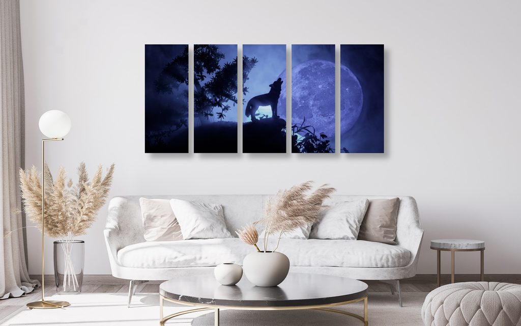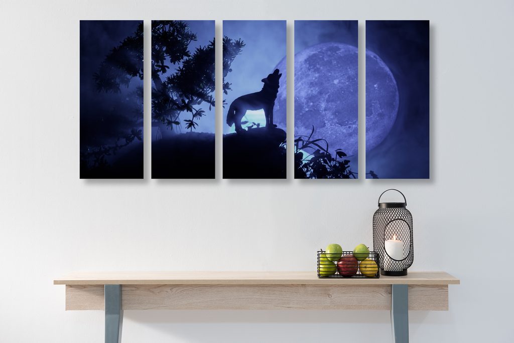 5 részes kép Holdra üvöltő farkas