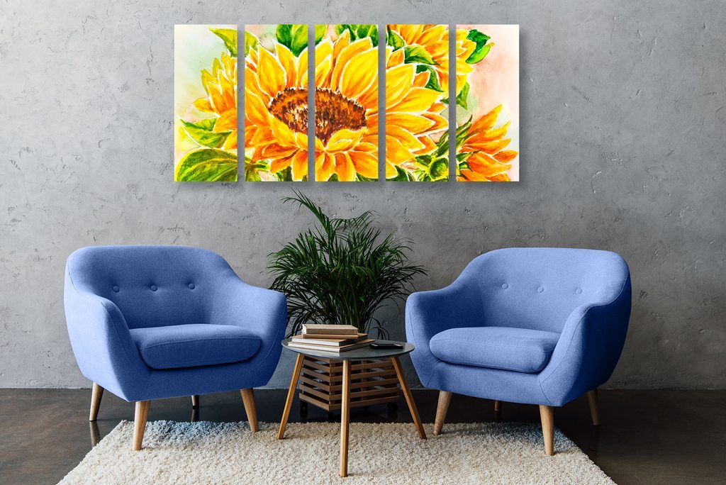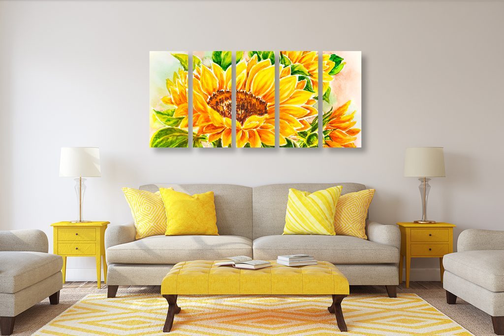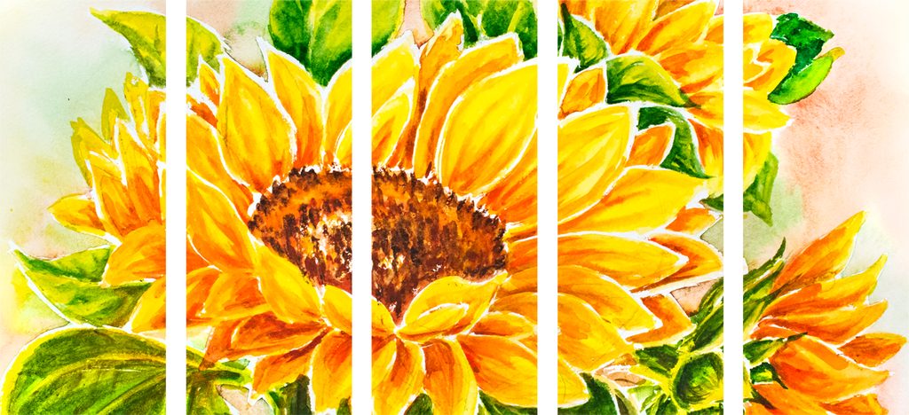 5 részes kép kivirágzott napraforgó