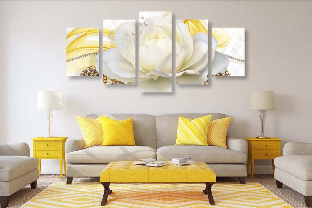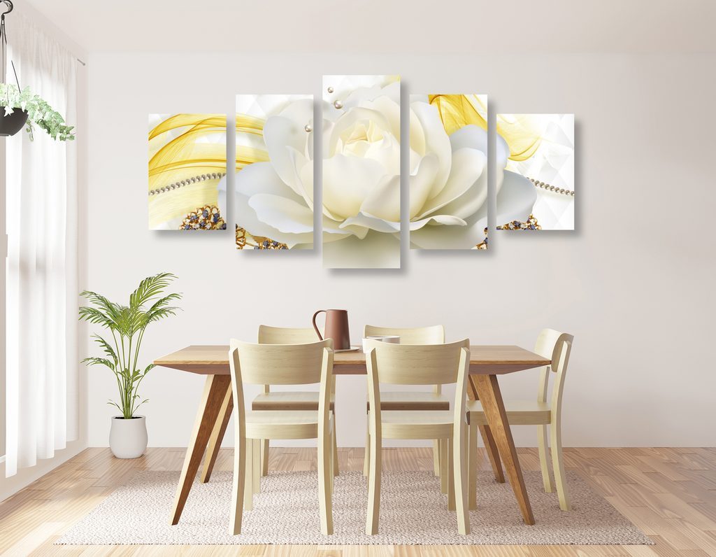 5 részes kép fekete-fehér luxus virágok bronz háttéren