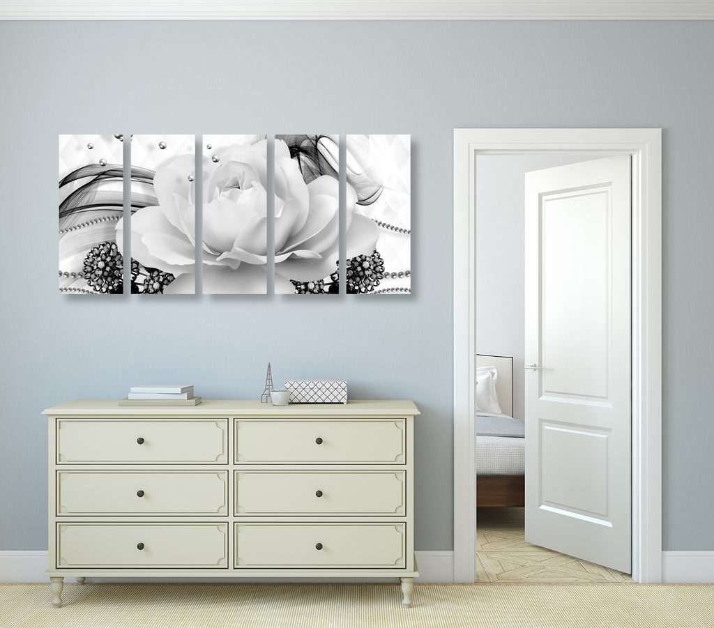 5 részes kép luxus virág gyöngyökkel fekete-fehér kivitelben