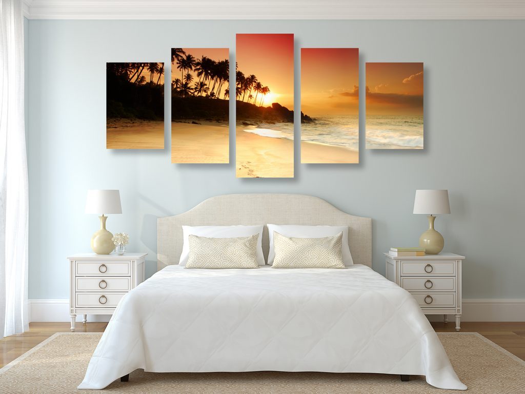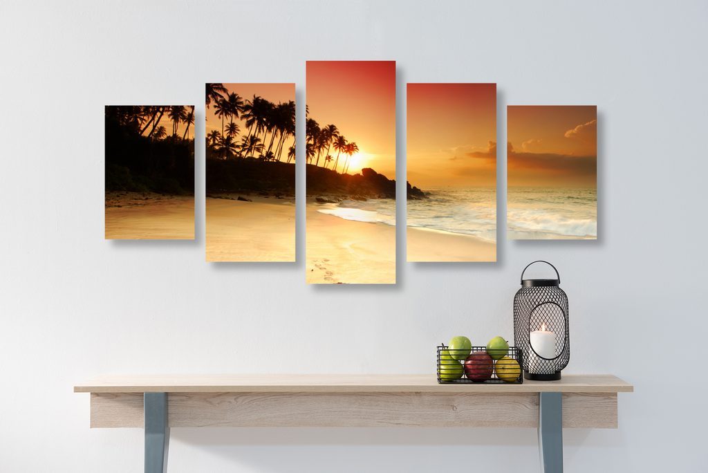 5 részes kép naplemente a sziget mögött