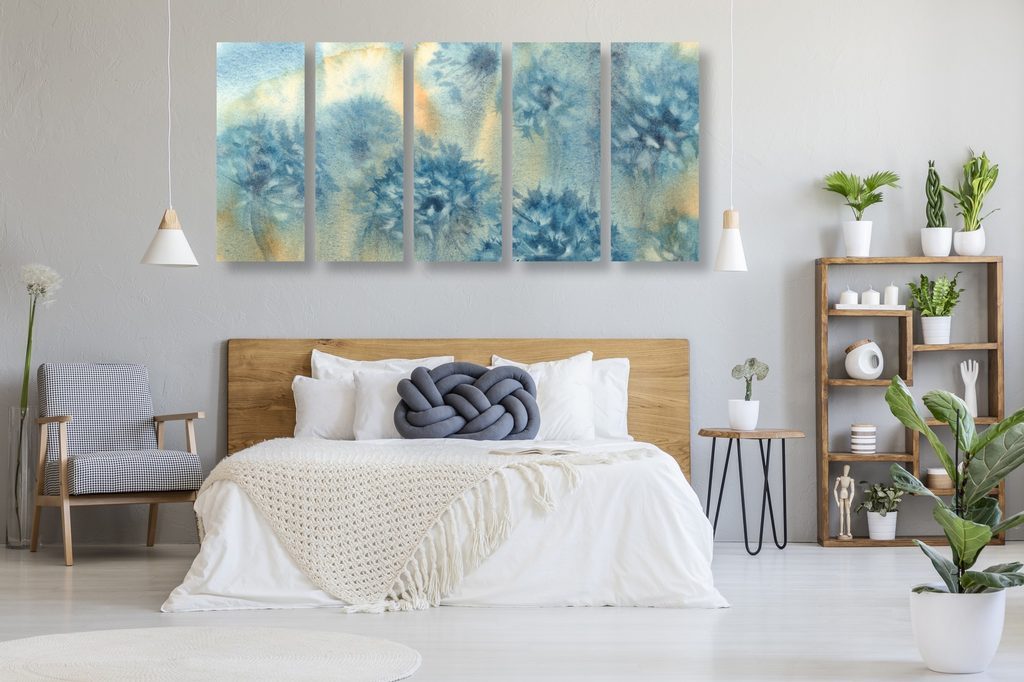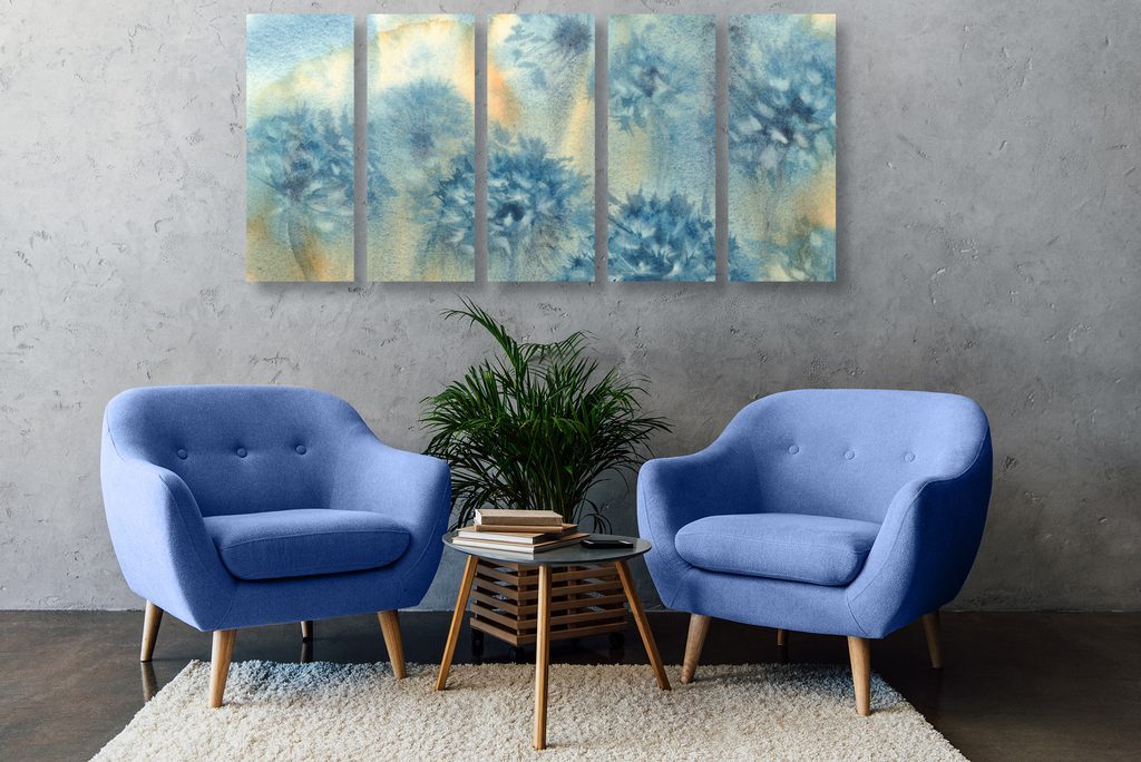 5 részes kép pitypang akvarell festménye kék árnyalatokban