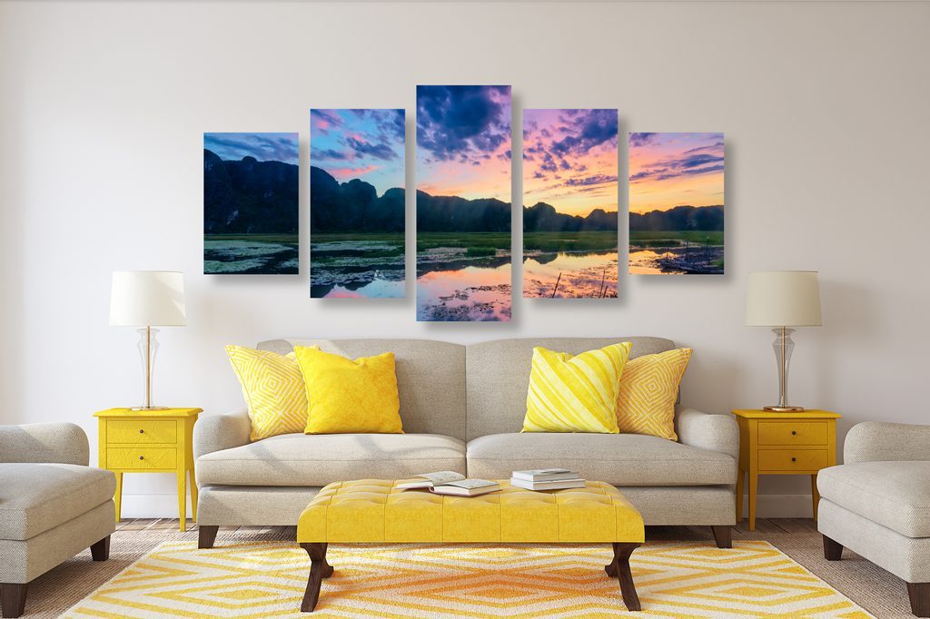 5 részes kép napsugaras rét olajfestménye