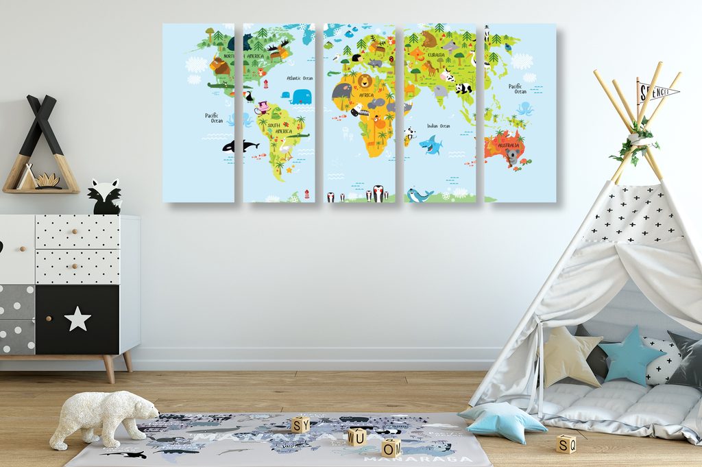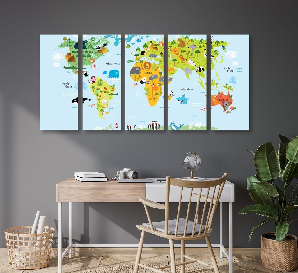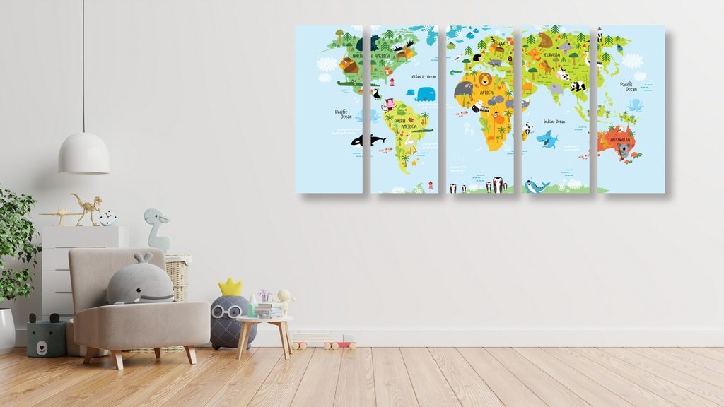 5 részes kép térkép gyerekeknek rajzolt állatkákkal