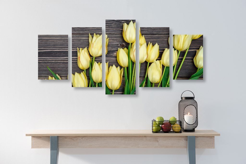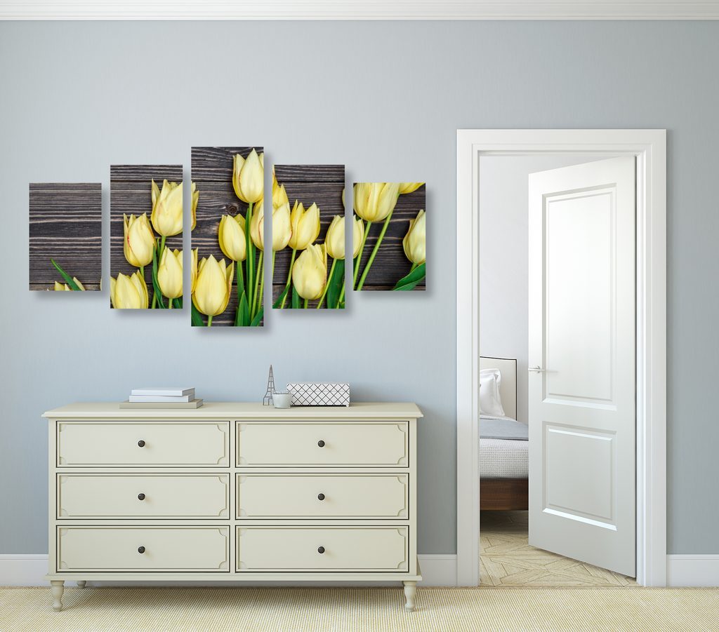 5 részes kép tulipánok a tavaszi kertben