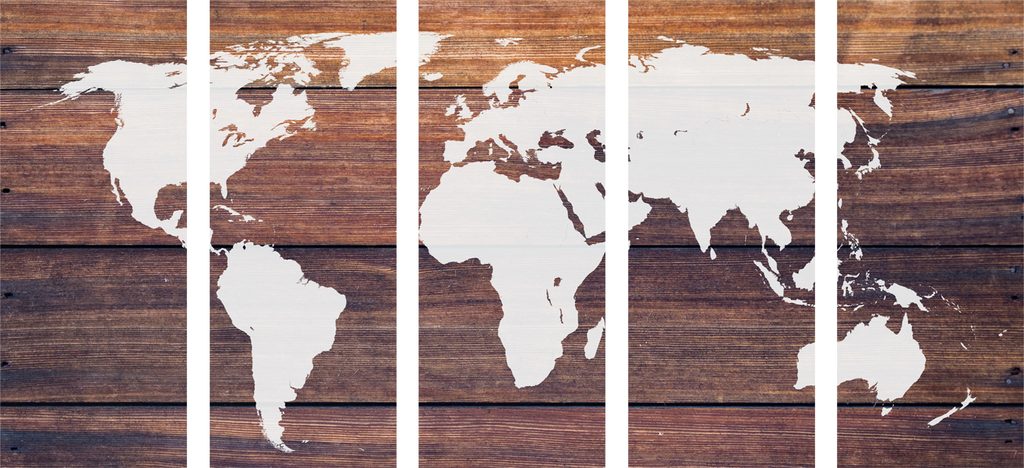 5 részes kép világtérkép fa háttéren