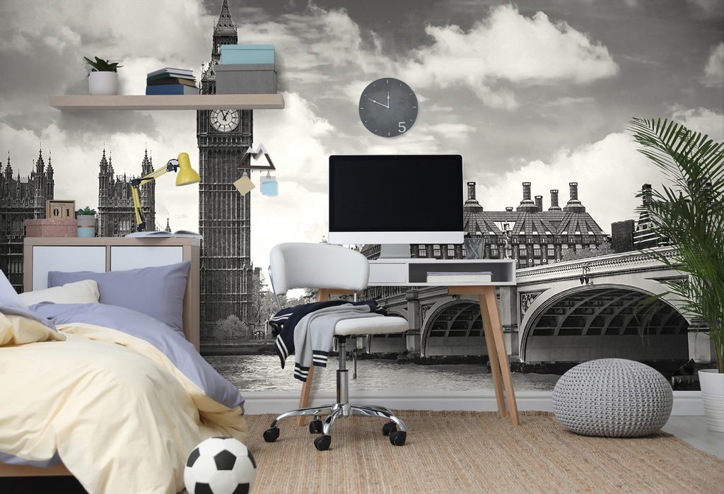 A londoni Elizabeth Tower fotótapéta fekete-fehérben