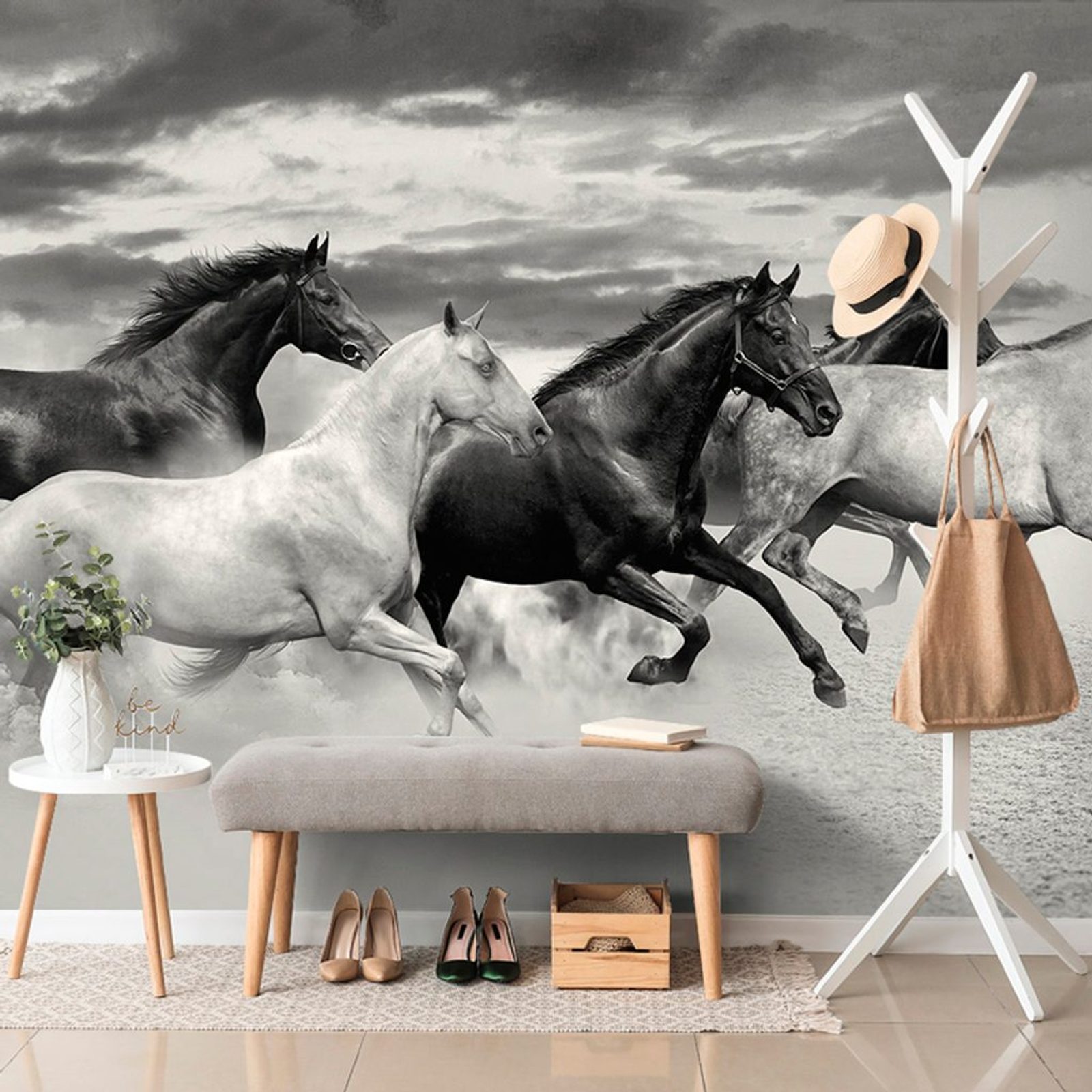 Bájos fekete-fehér tapéta vágtató lócsordáról