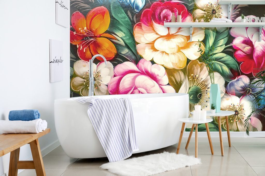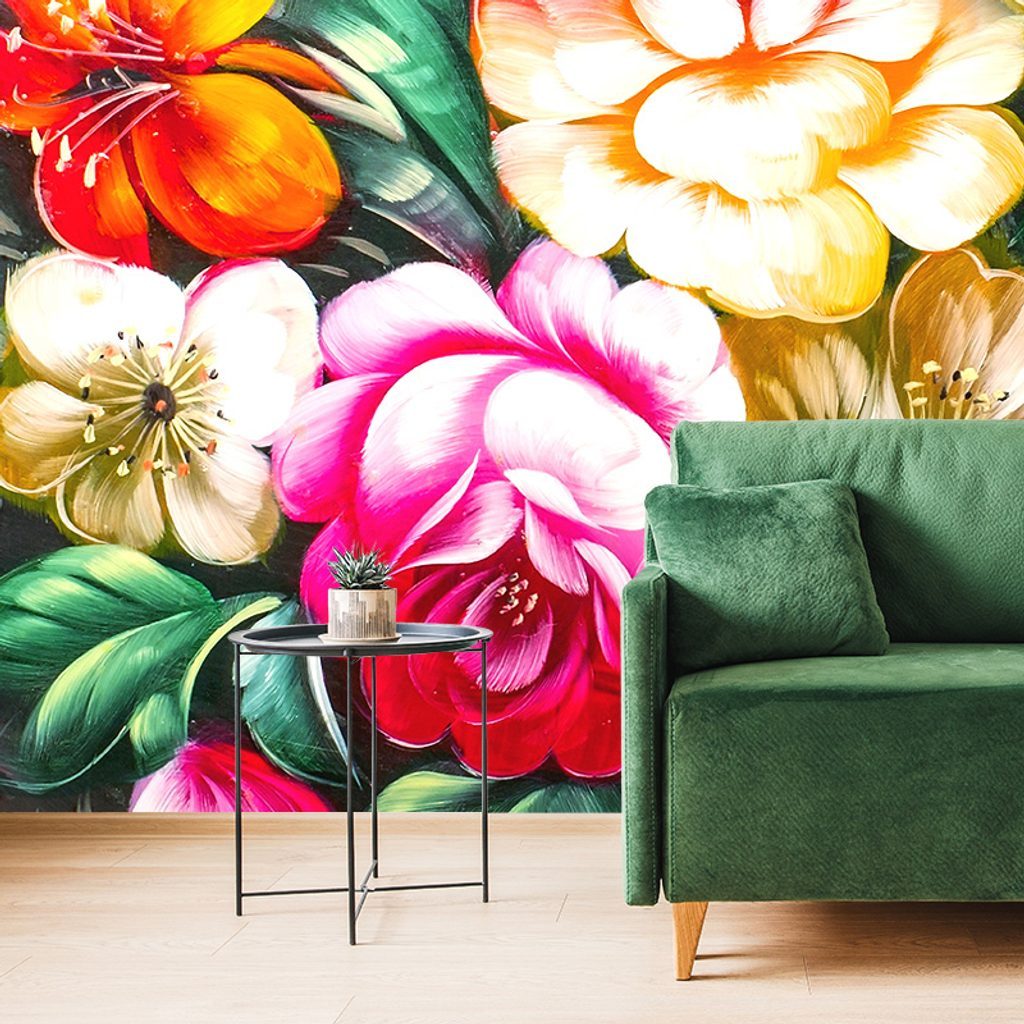 Bájos öntapadó tapéta virágokból impresszionista stílusban