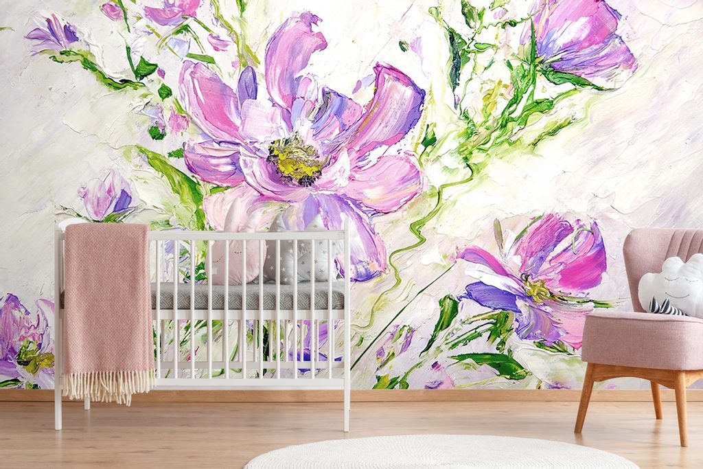 Bájos öntapadó tapéta virágokból impresszionista stílusban