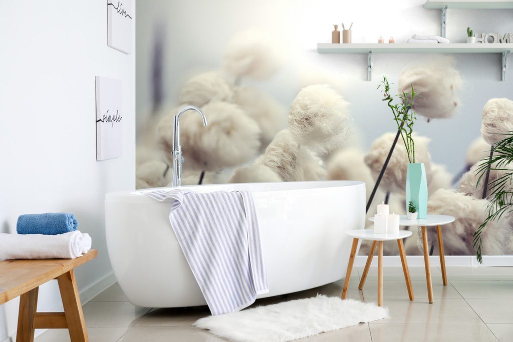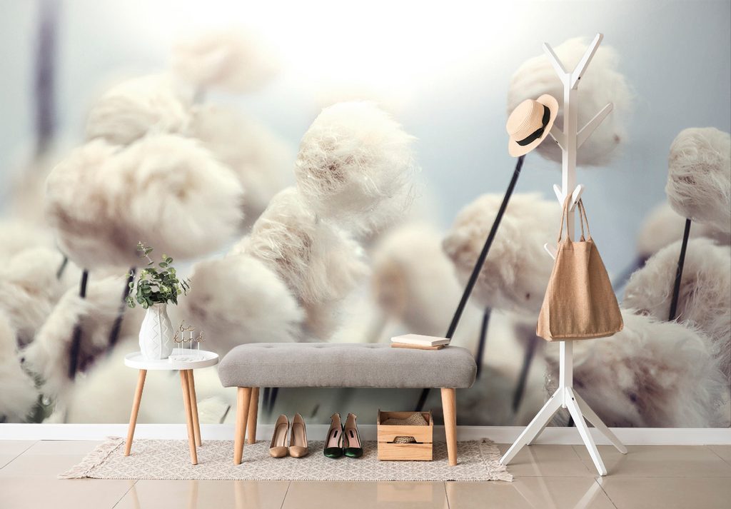 Bájos tapéta pamut virágok a szélben