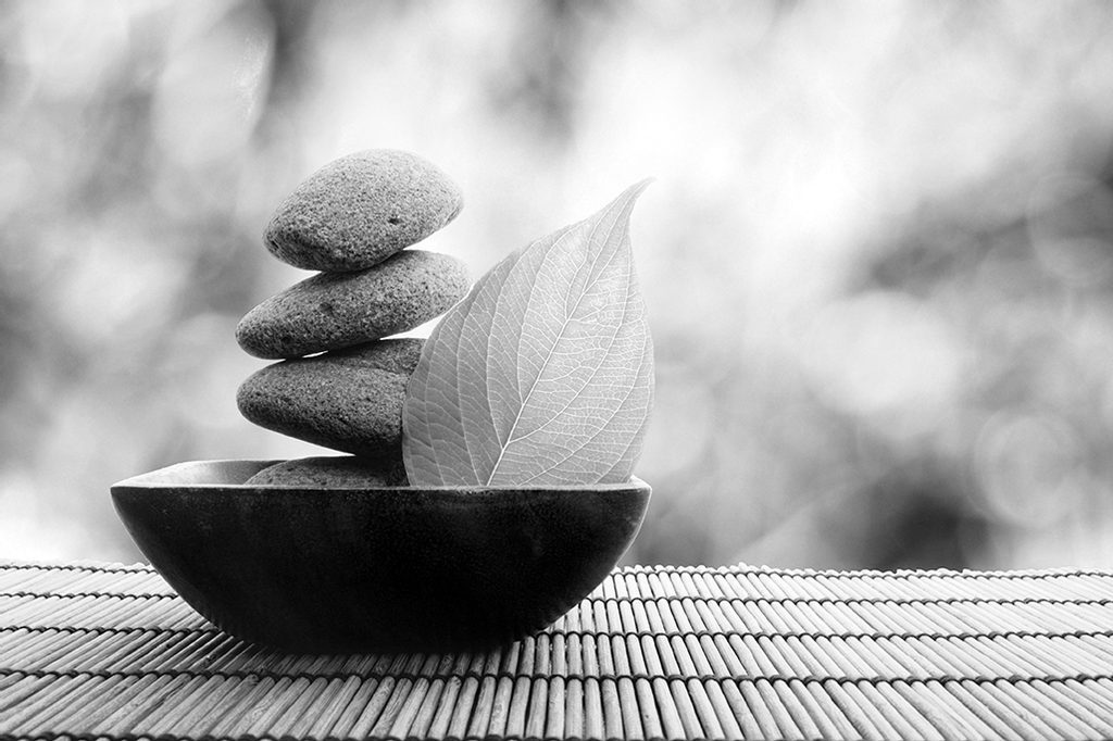 Egyedi fekete-fehér fotótapéta tál zen kövekkel