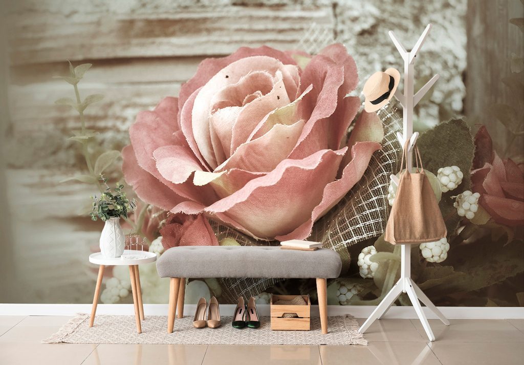 Érdekes öntapadó fotótapéta rózsáról vintage dizájnban