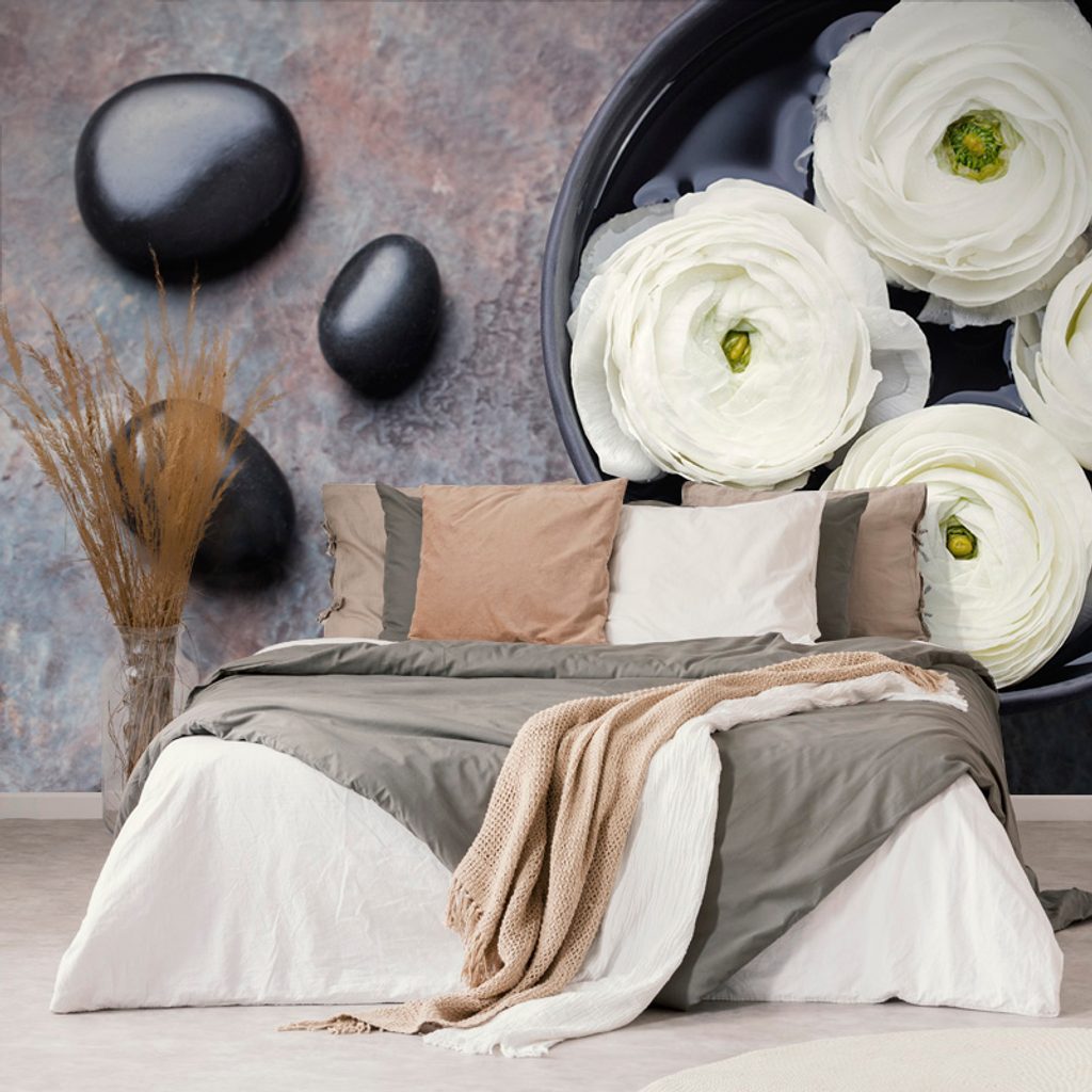 Eredeti fotótapéta csendélet zen kövekből virággal