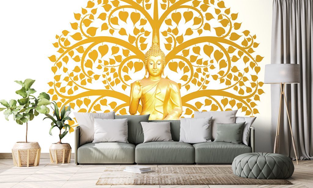 Eredeti öntapadó tapéta arany Buddha az élet fája közelében