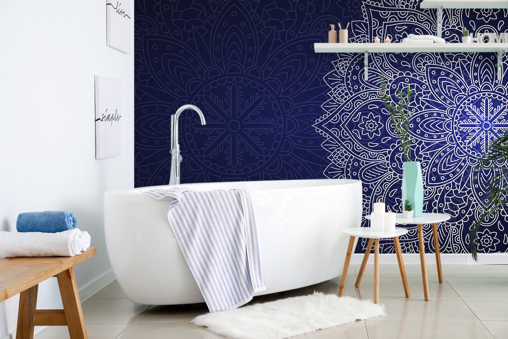 Eredeti öntapadó tapéta fehér dísz kék alapon