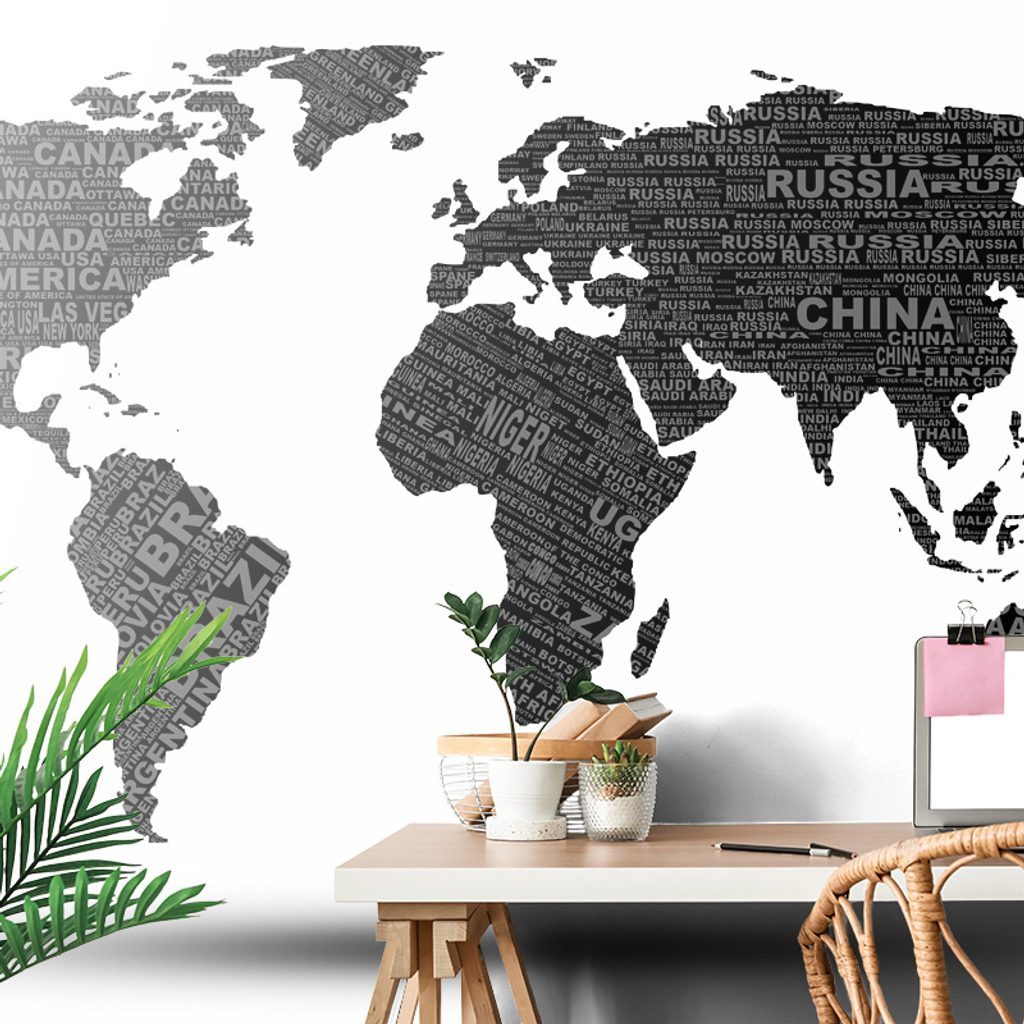 Eredeti öntapadó tapéta modern világtérkép fekete-fehérben