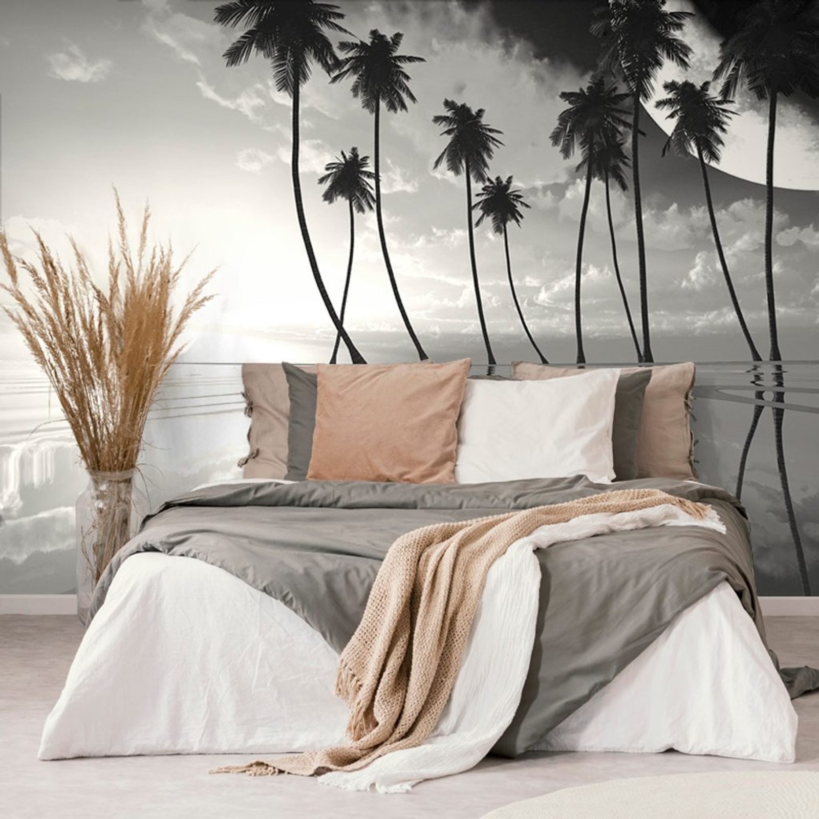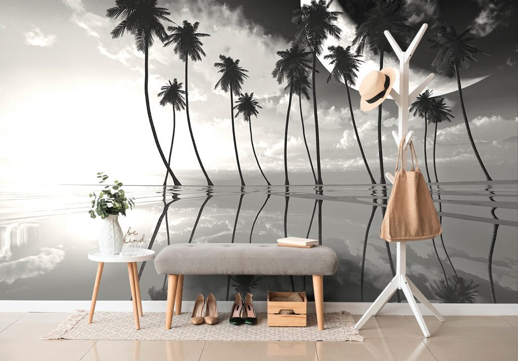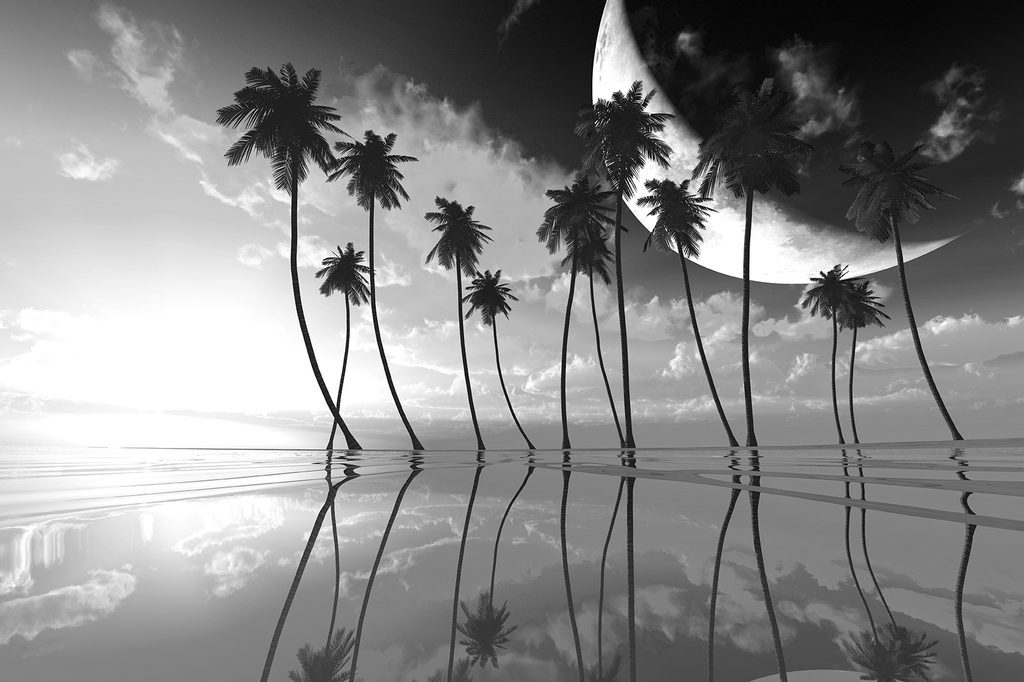 Fekete-fehér egzotikus pálmafák naplementekor tapéta