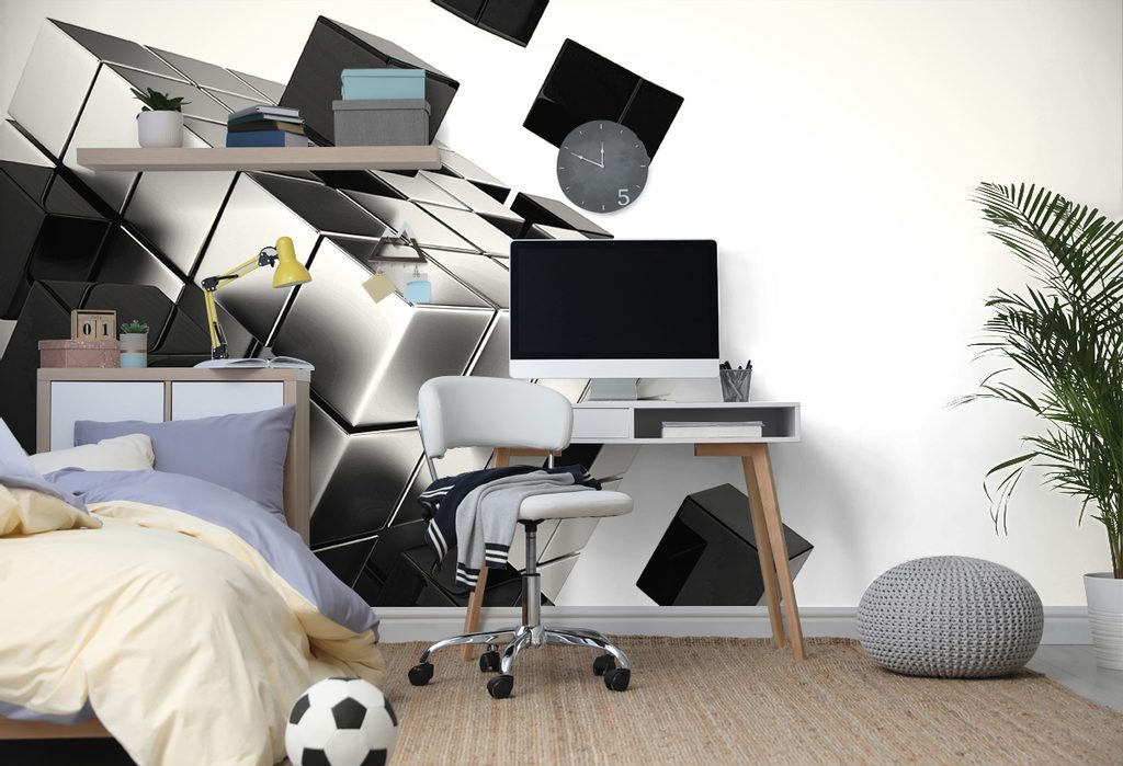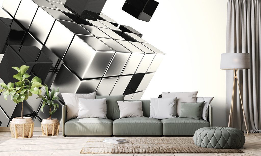 Fekete-fehér modern Rubik-kocka öntapadó tapéta