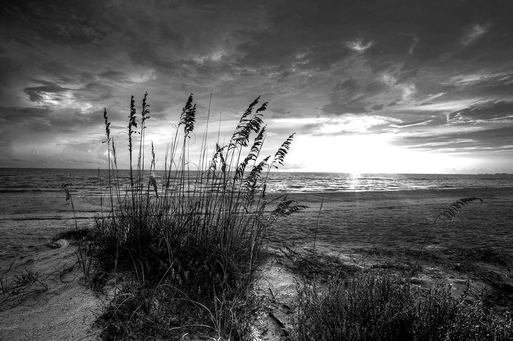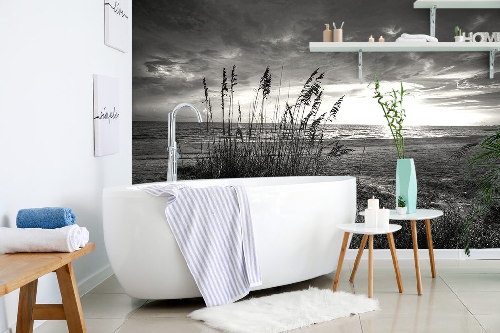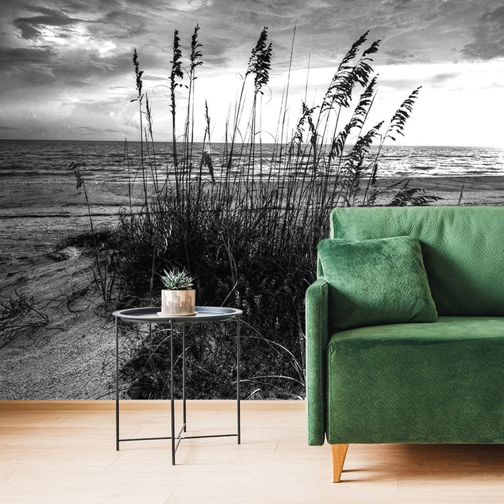 Fekete fehér öntapadó fotótapéta naplemente a tengerpartról