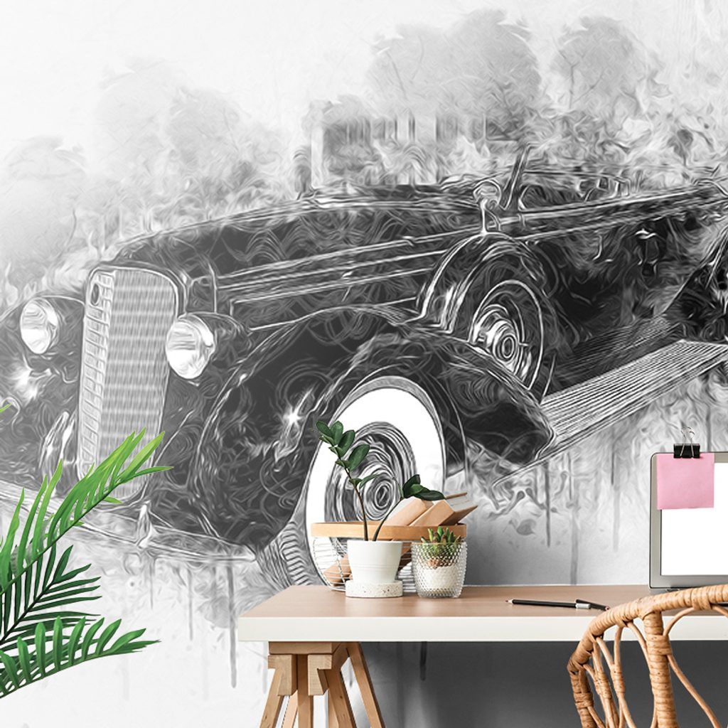 Tapéták Öntapadó tapéták Fekete fehér Vintage és retró Autók