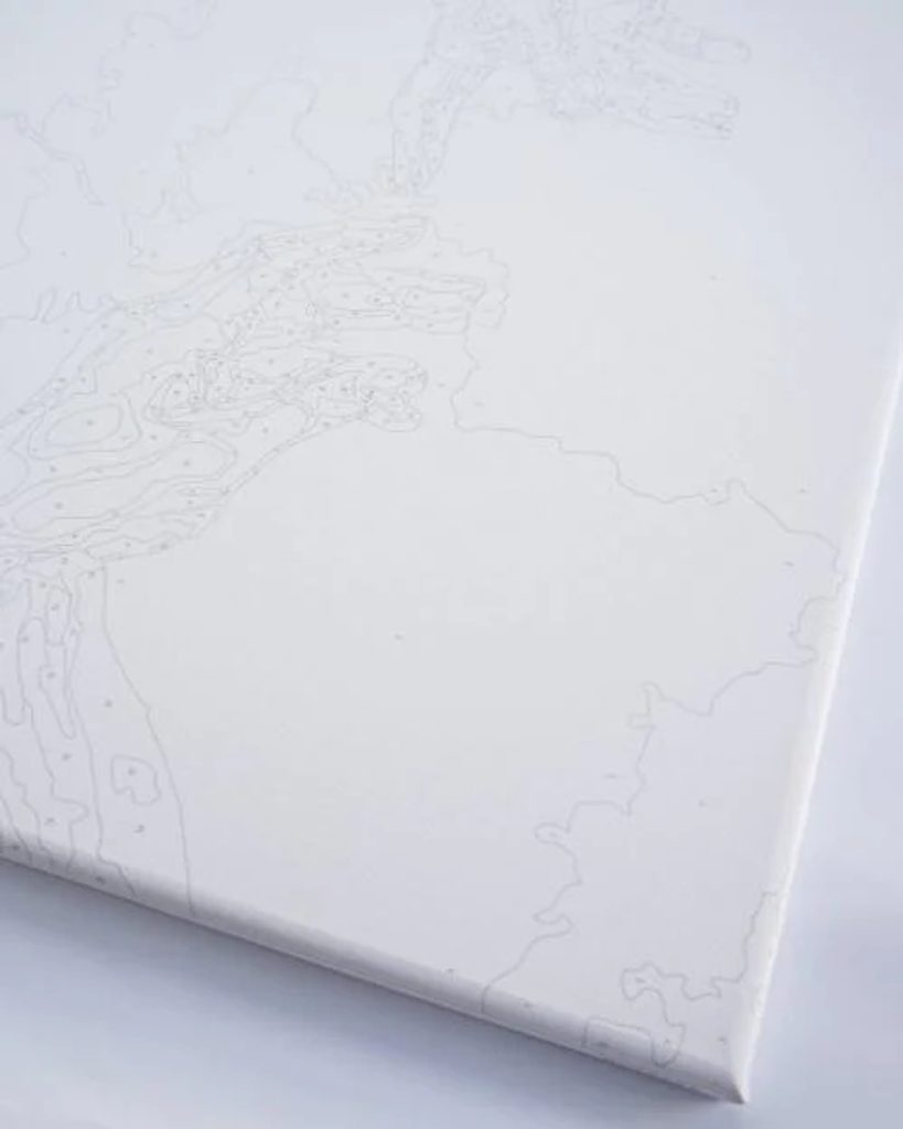 Vászon, előre megrajzolt körvonalakkal és megszámozott mezőkkel.