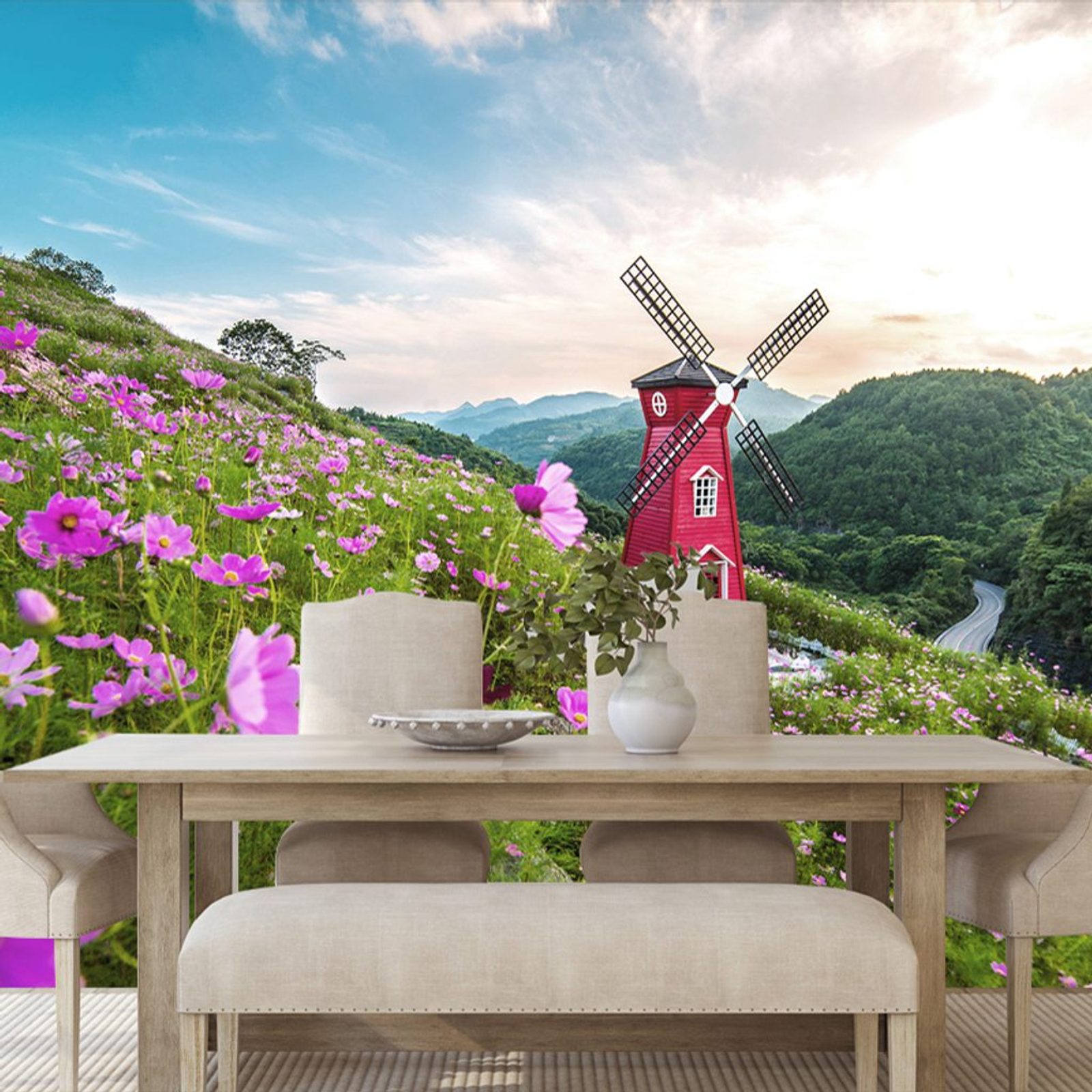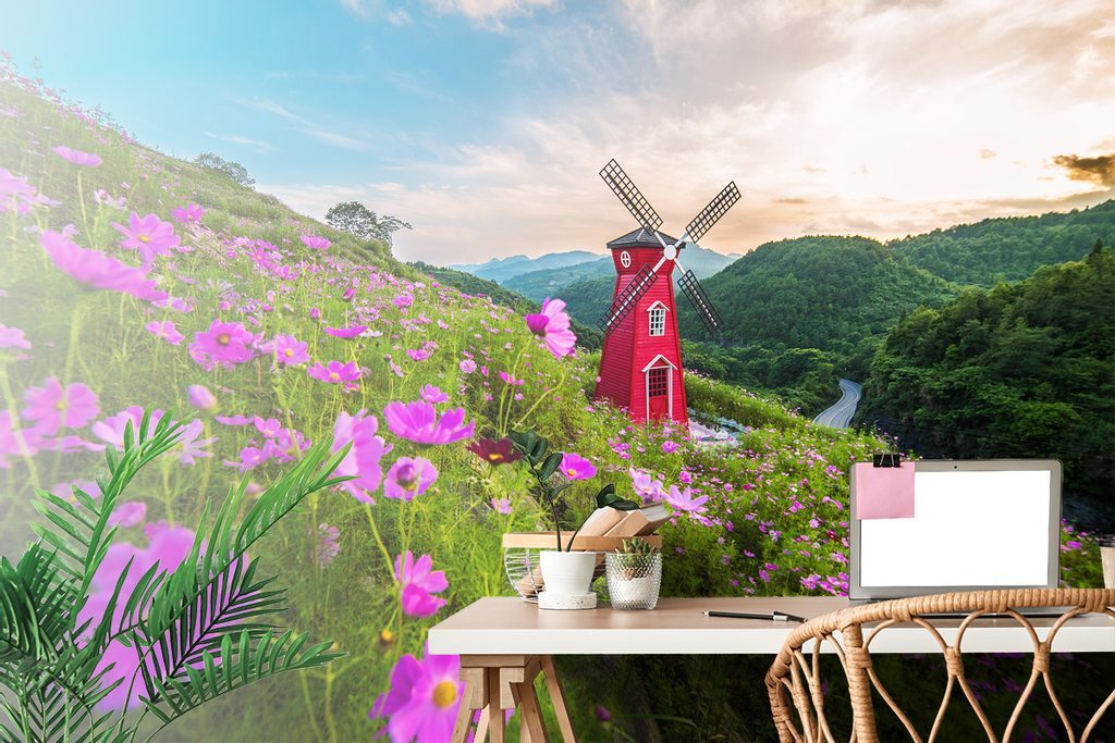 Fotótapéta egy malomról a gyönyörű természet közepén