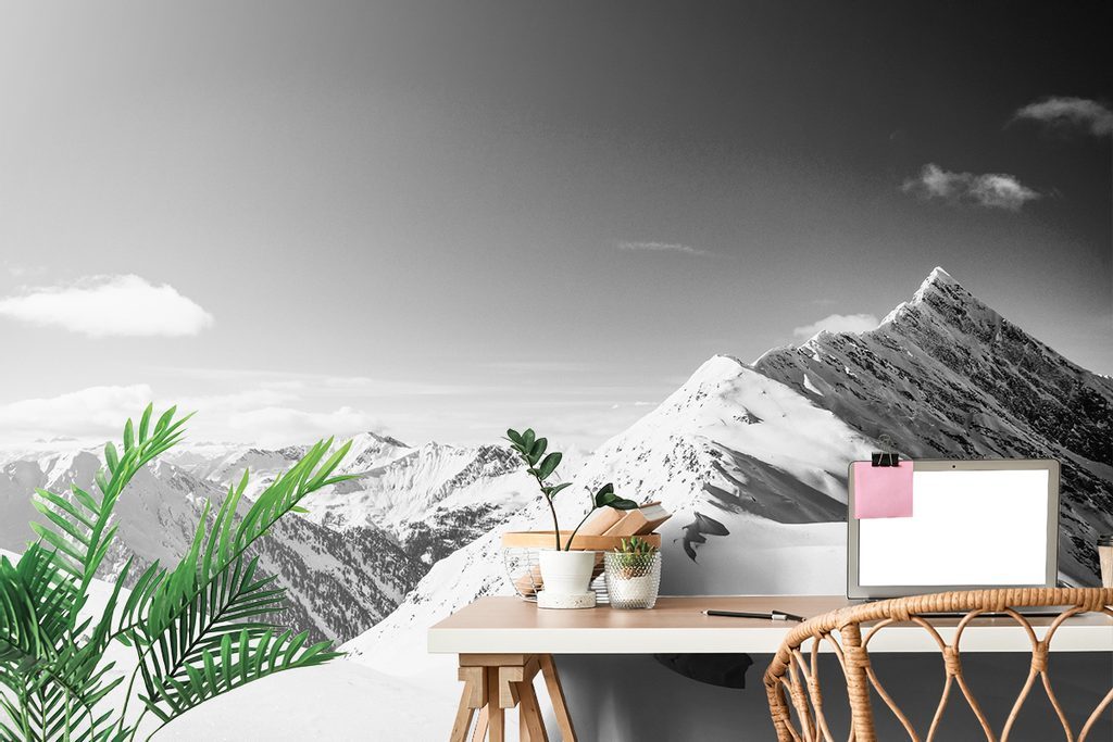 Fotótapéta fekete-fehér dombok hóval borítotva