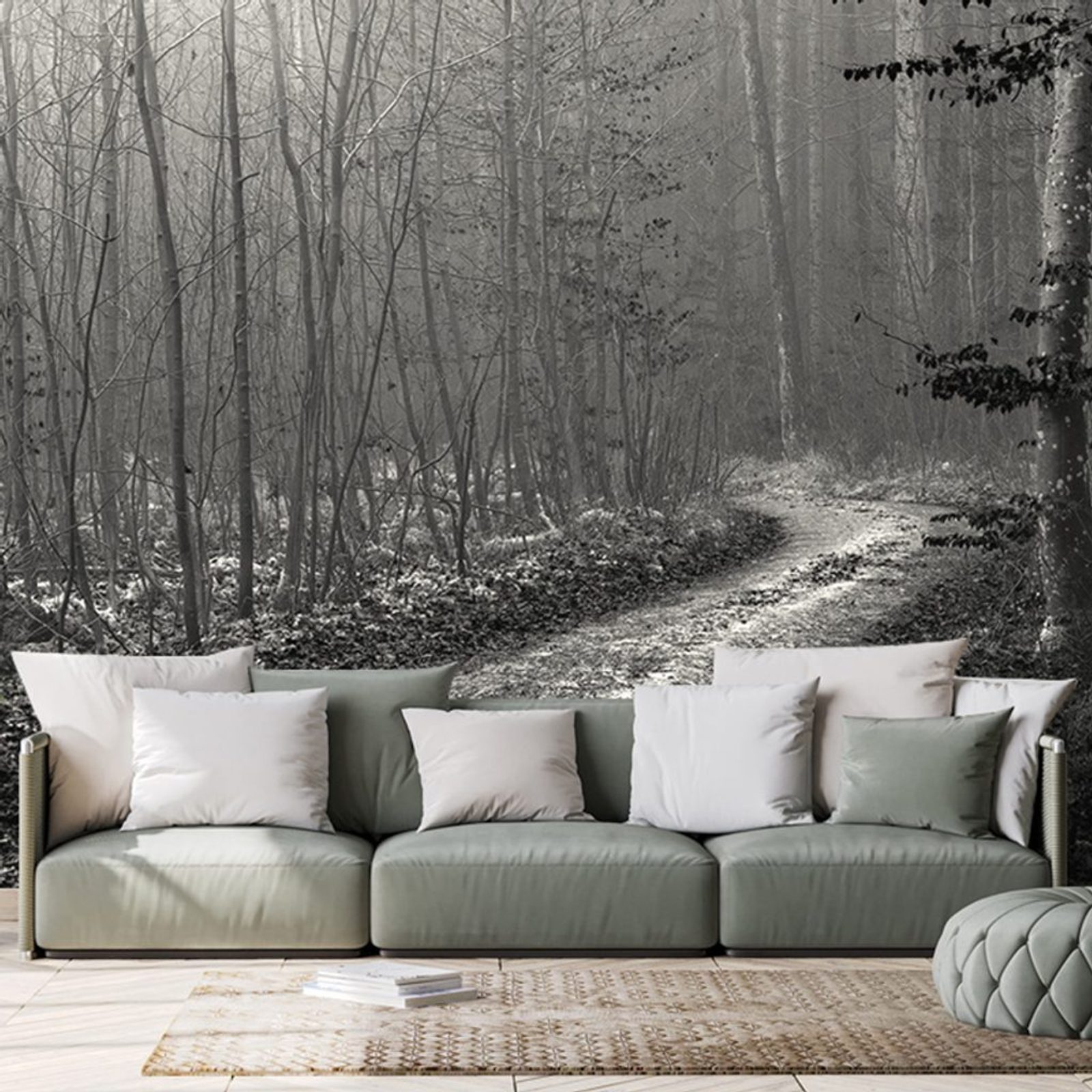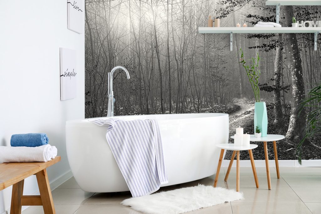 Fotótapéta fekete-fehér meseút az erdőn keresztül