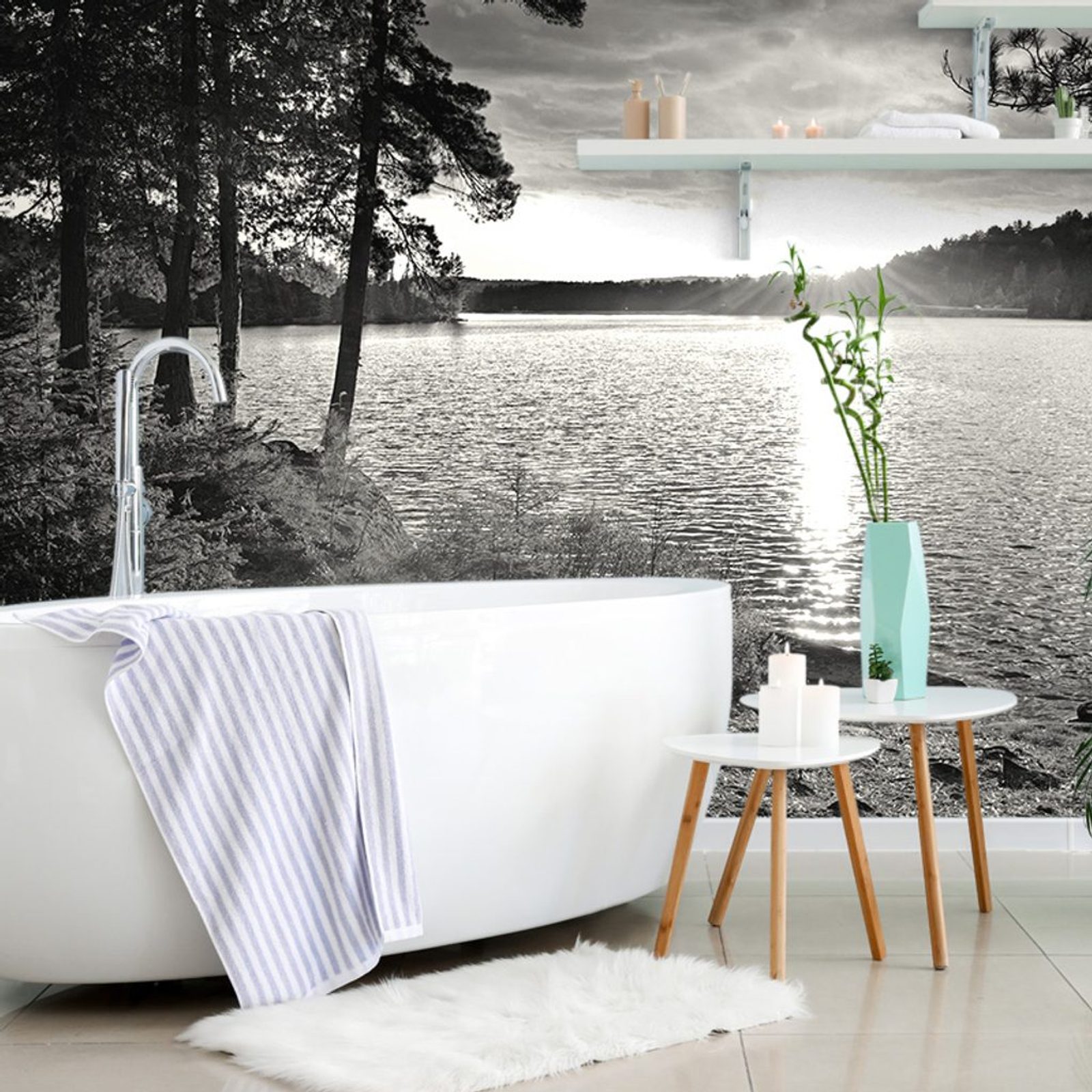 Fotótapéta fekete-fehér naplemente a tó mellett