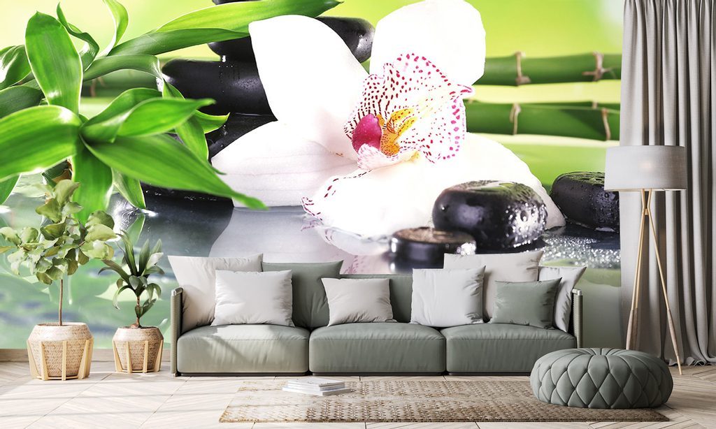 Fotótapéta csendélet zen kövekből, rózsaszín liliommal