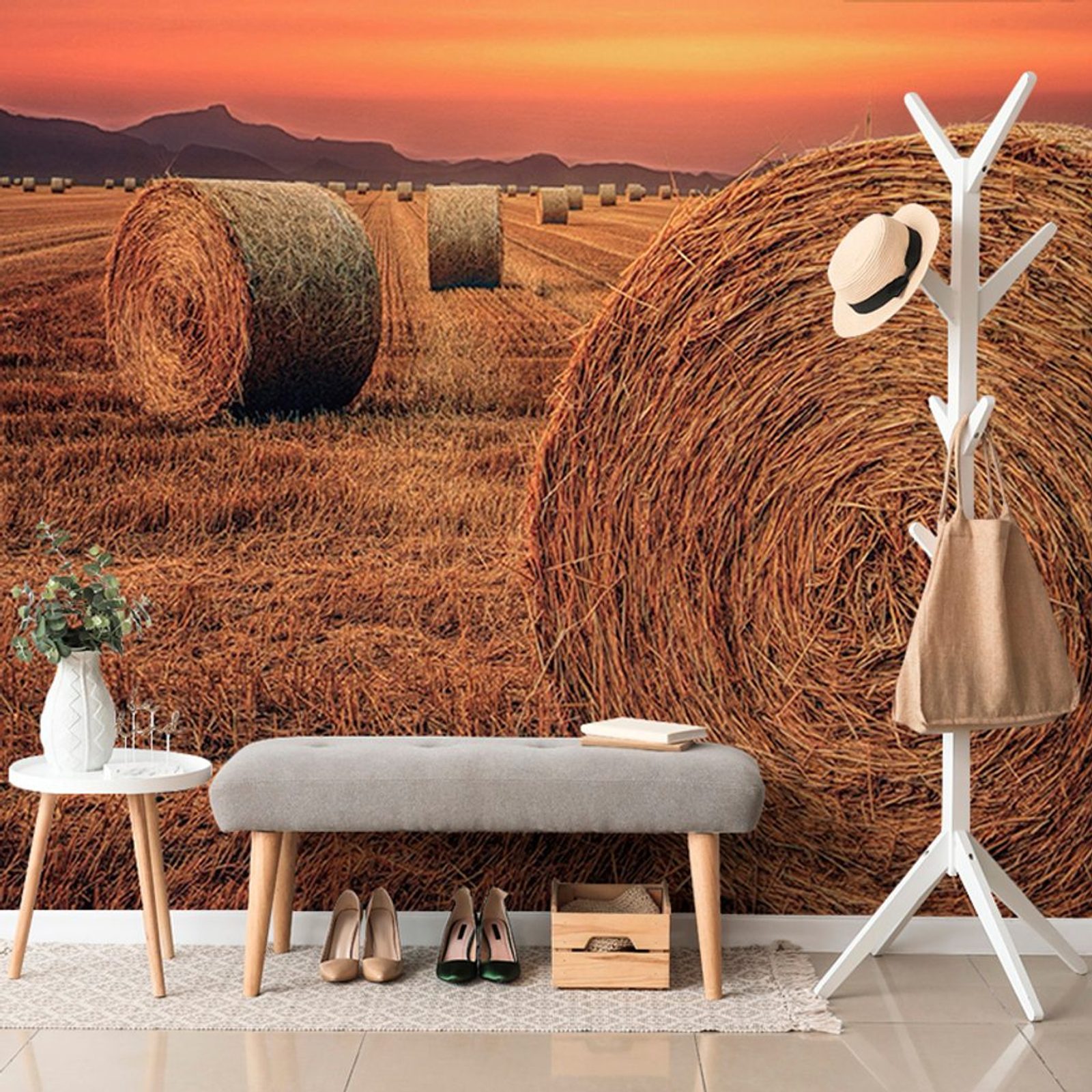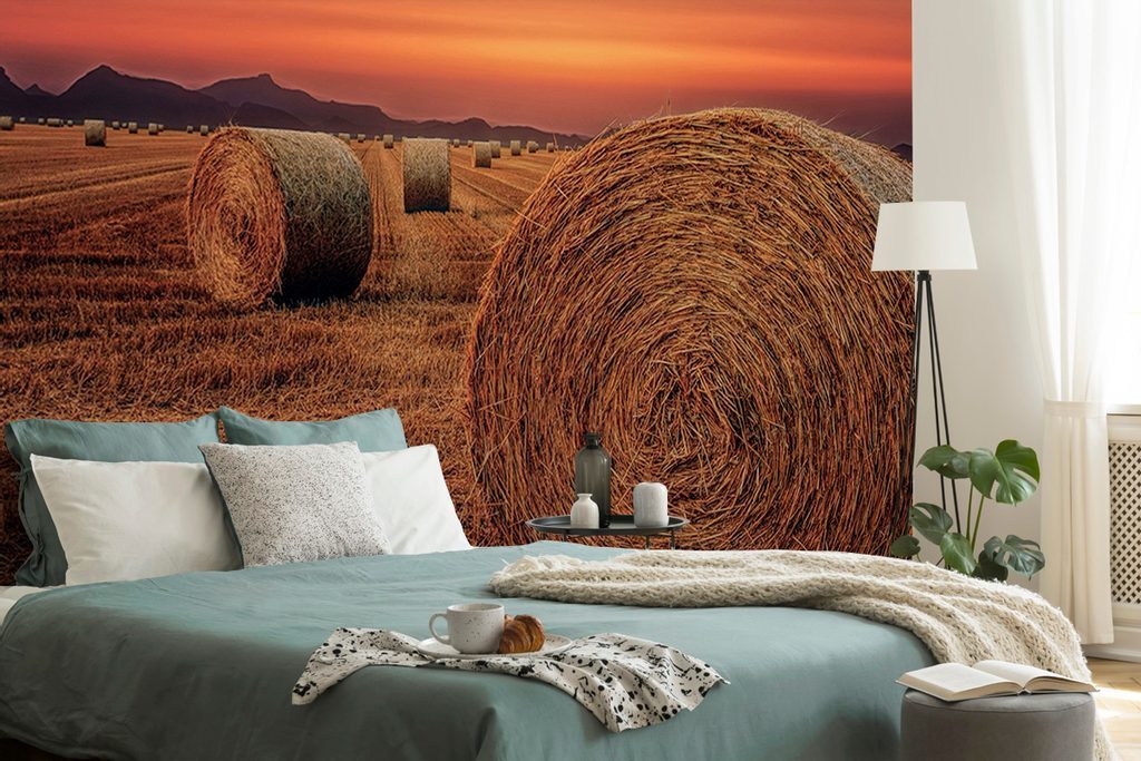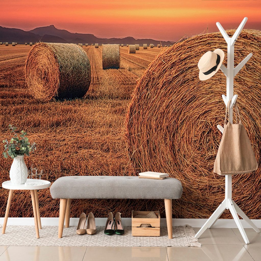 Fotótapéta mező szénabálákkal