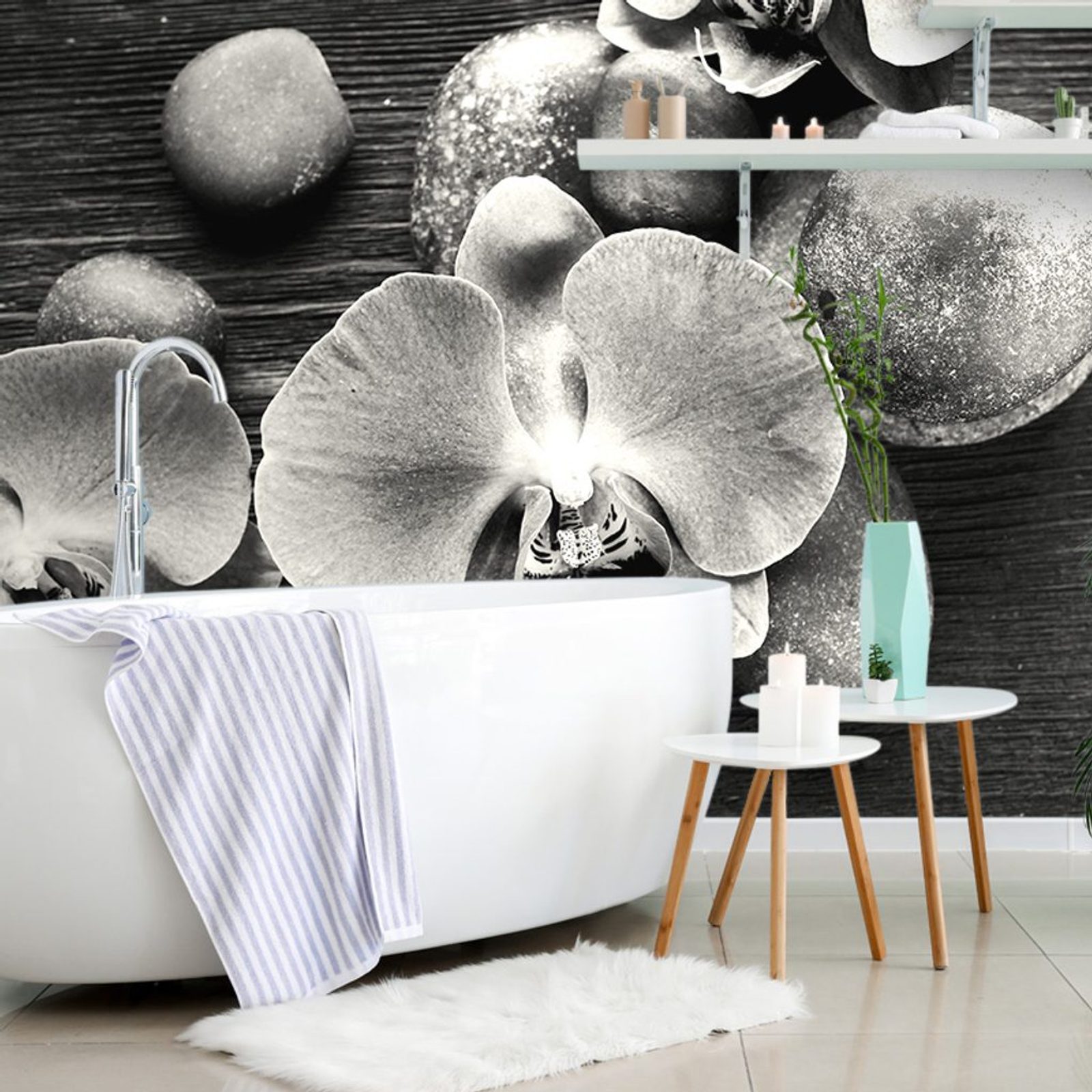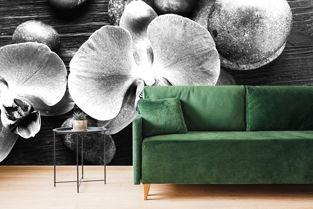 Fotótapéta orchidea zen kövekkel fekete-fehér kivitelben