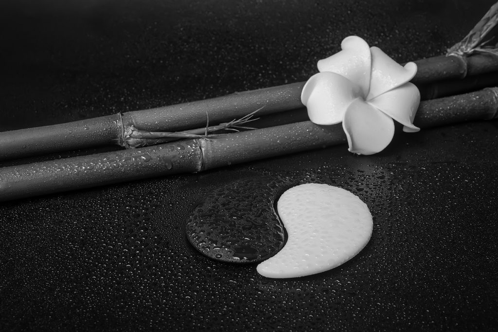 Fotótapéta wellness csendélet Ying és Yang fekete-fehér kivitelben