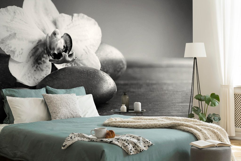 Fotótapéta zen kövekből, fekete-fehér orchideával