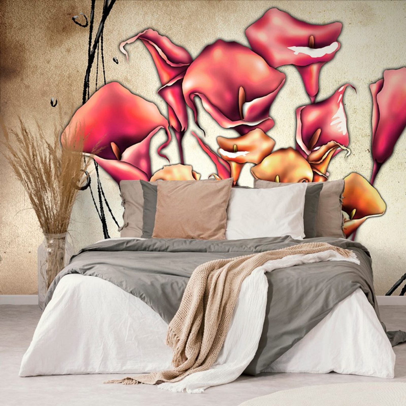 Tapéta Gyönyörű etnikai virágok rózsaszín árnyalatban