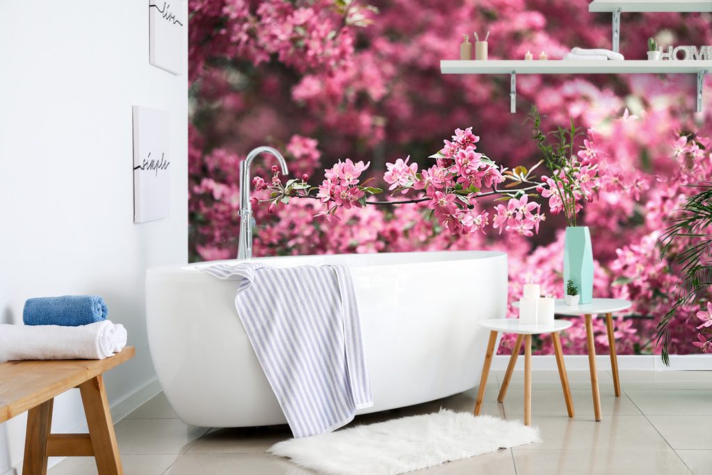 Gyönyörű cseresznyevirágos öntapadó tapéta