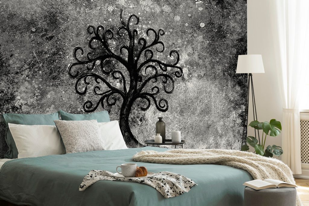 Gyönyörű életfa öntapadó tapéta fekete-fehérben