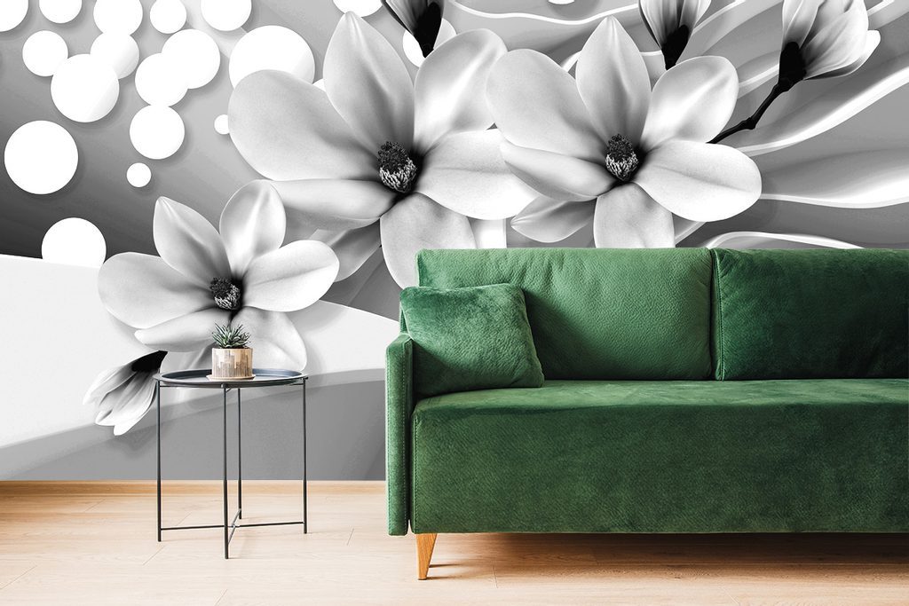 Gyönyörű magnólia öntapadó tapéta fekete-fehér kivitelben