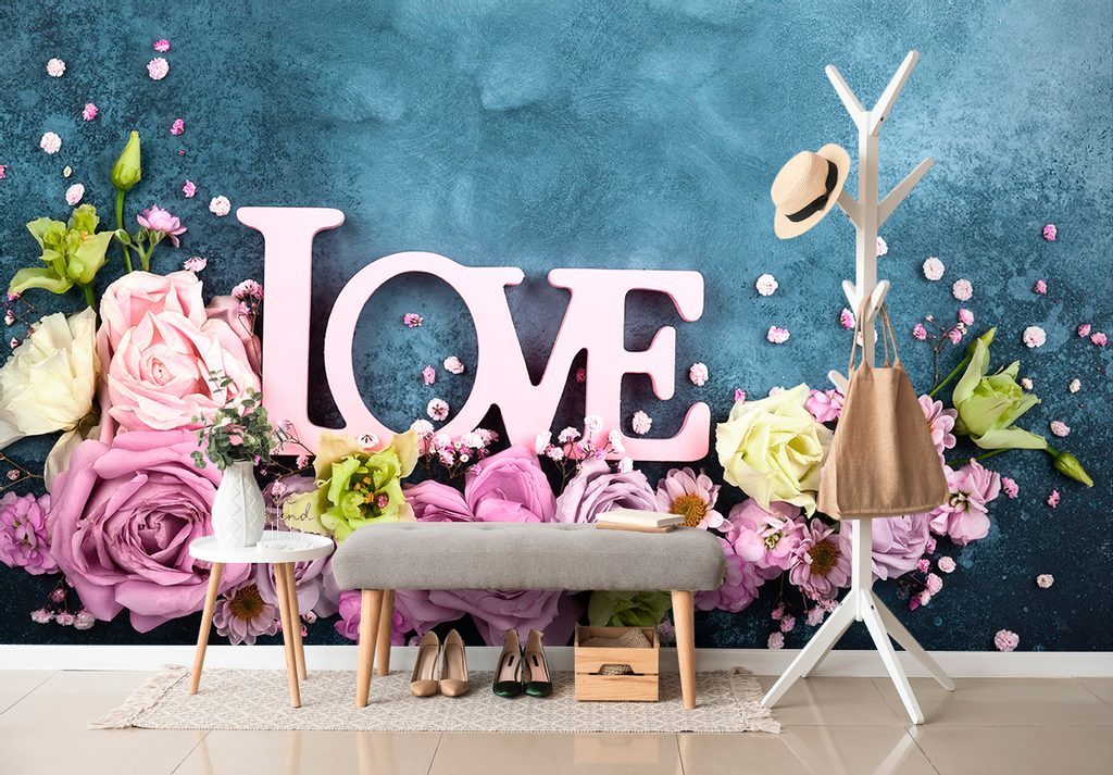 Gyönyörű öntapadó fotótapéta rózsáról Love felirattal
