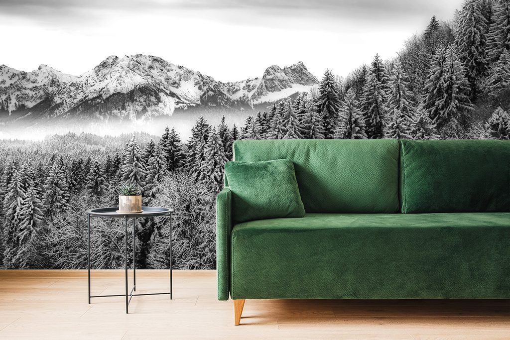 Havas táj öntapadó fotótapéta fekete-fehérben