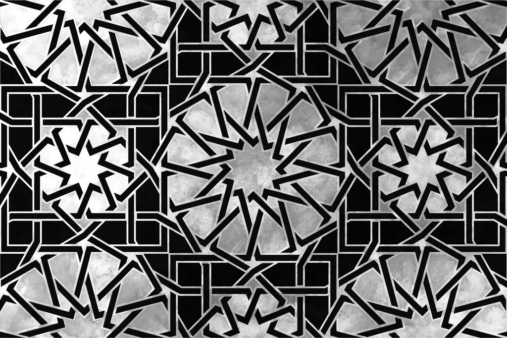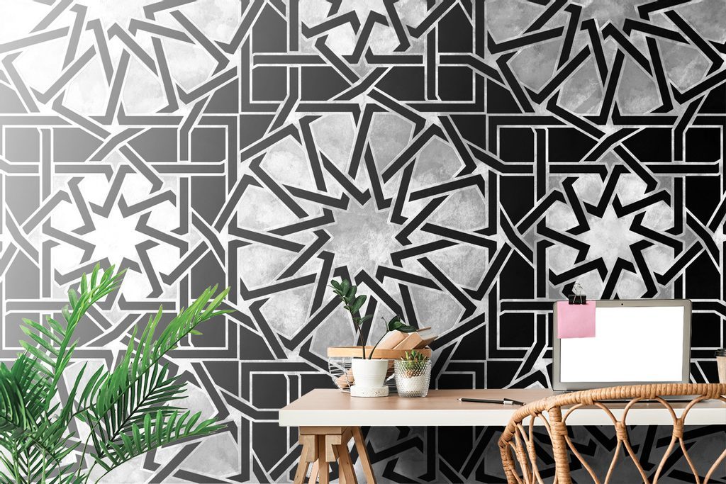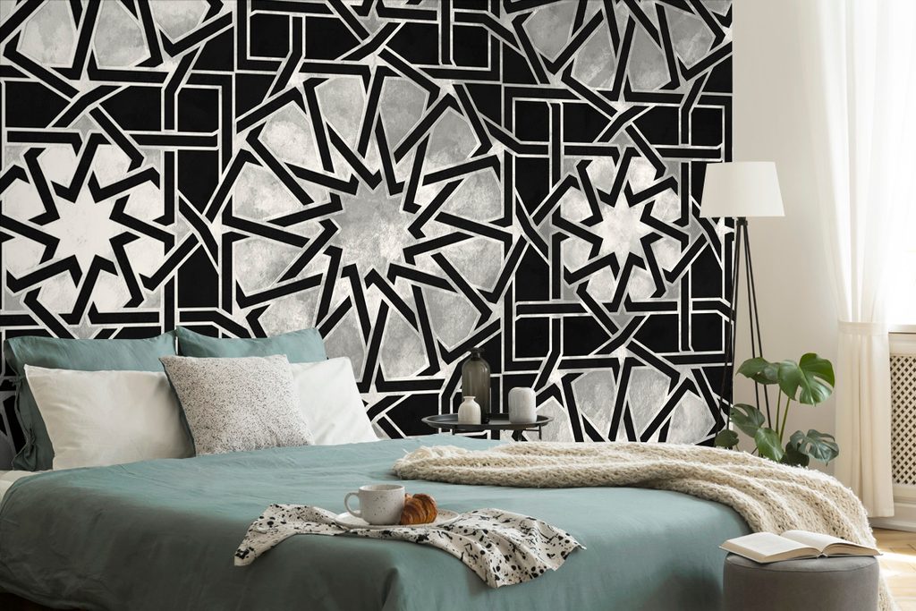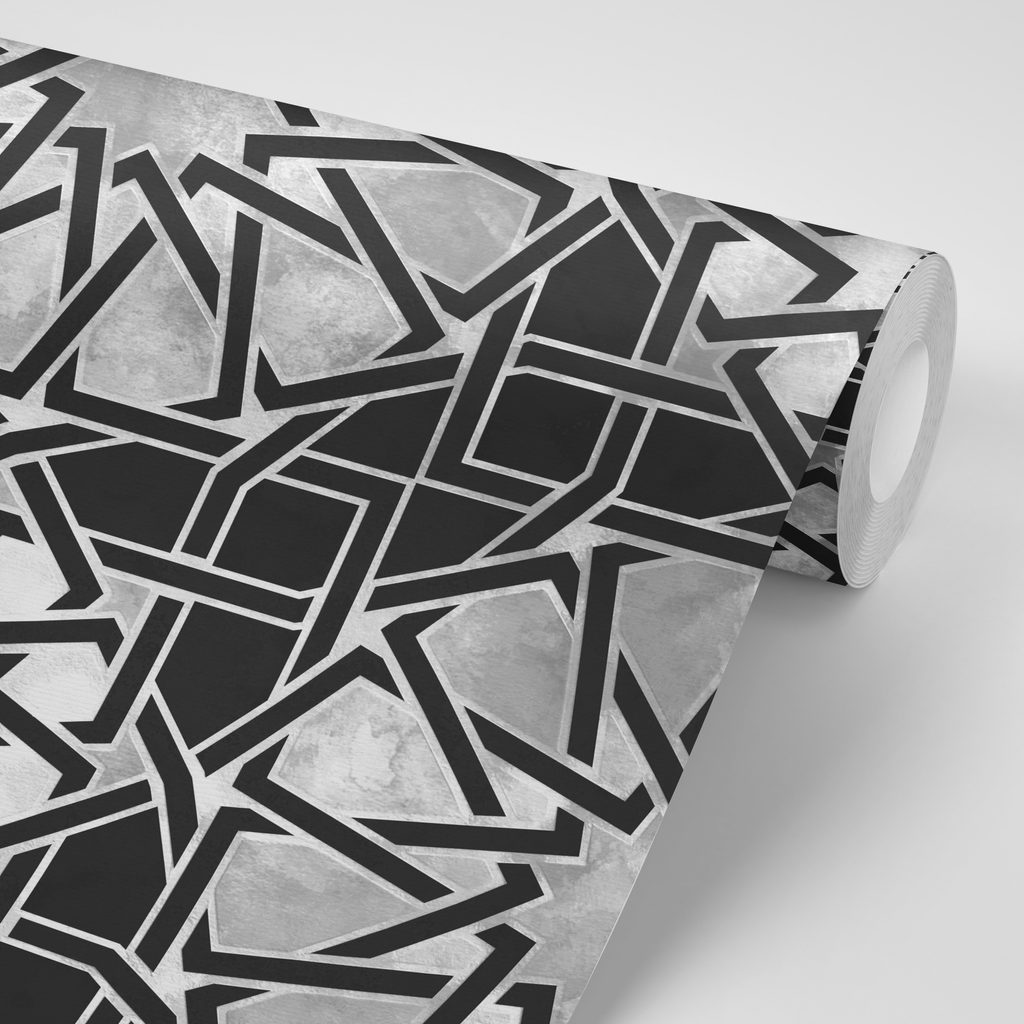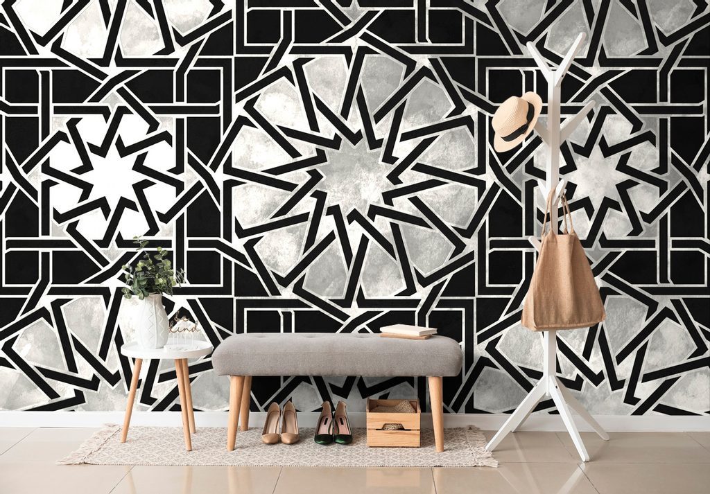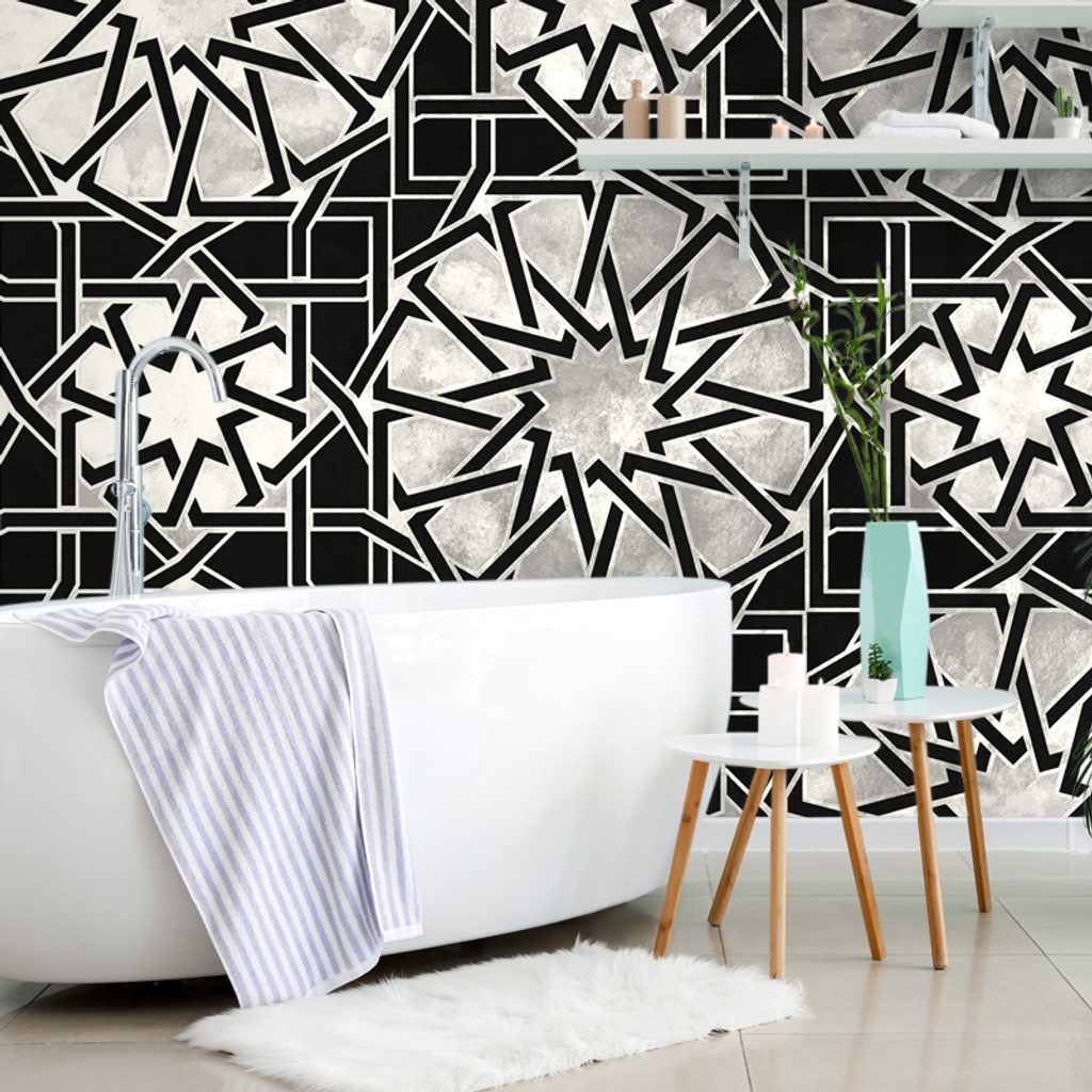 Keleti hatású fekete-fehér mozaik öntapadó tapéta